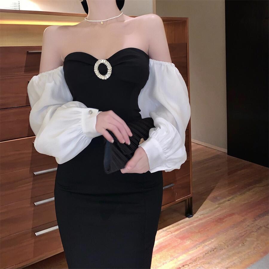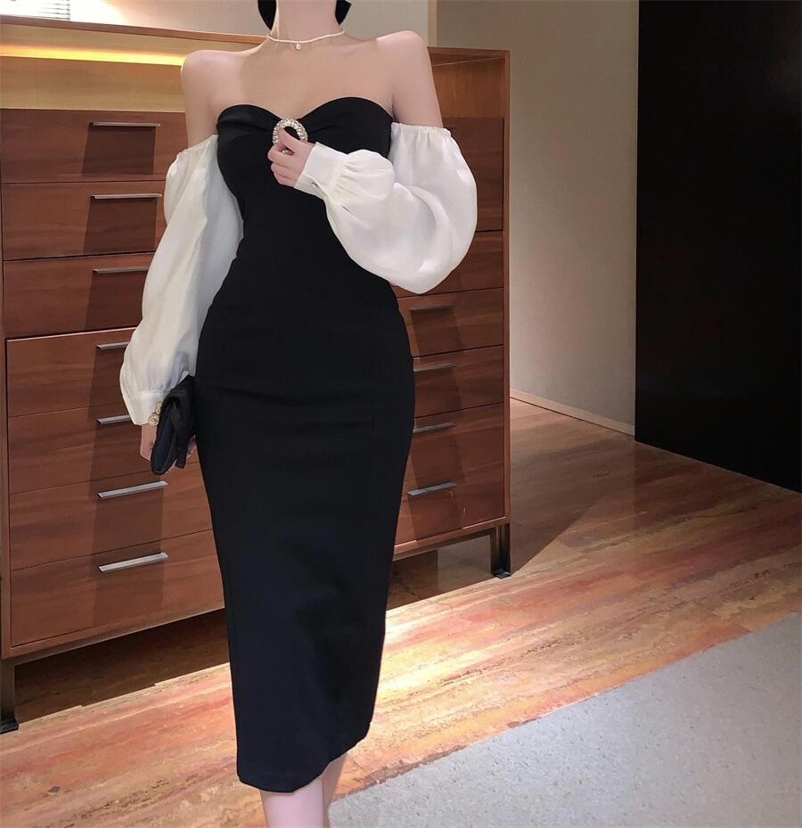 フランスのレトロなロイヤルシスターライトおなじみのスタイルセクシーなロングドレススリムフィットとスリムなハイエンドライト豪華な見事なドレス女性の秋と冬 オータム 秋物 ウィンター 冬物 yingd34946678885