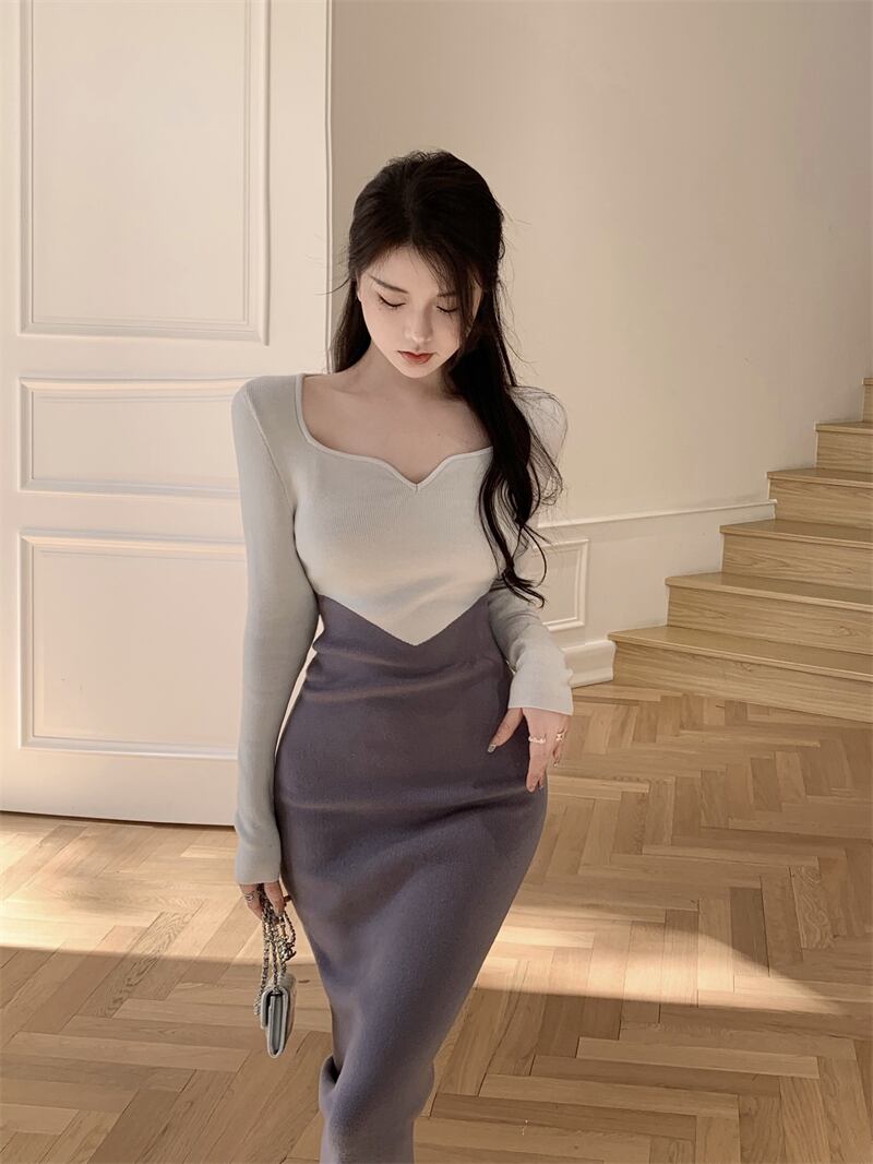 フランスのロングタイトセータードレスYujie揚げ街灯おなじみのスタイルシックなデザイン純粋な欲望ニットドレス秋と冬 ストリート オータム 秋物 ウィンター 冬物 ピュア yingd55261151755