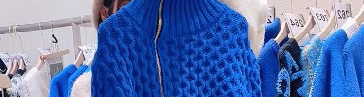 タートルネックセーターの女性の冬の厚みのあるインナージッパーのデザインは、ルーズで怠惰なクラインブルーのニットトップをひねります ウィンター 冬物 yingd2613076392