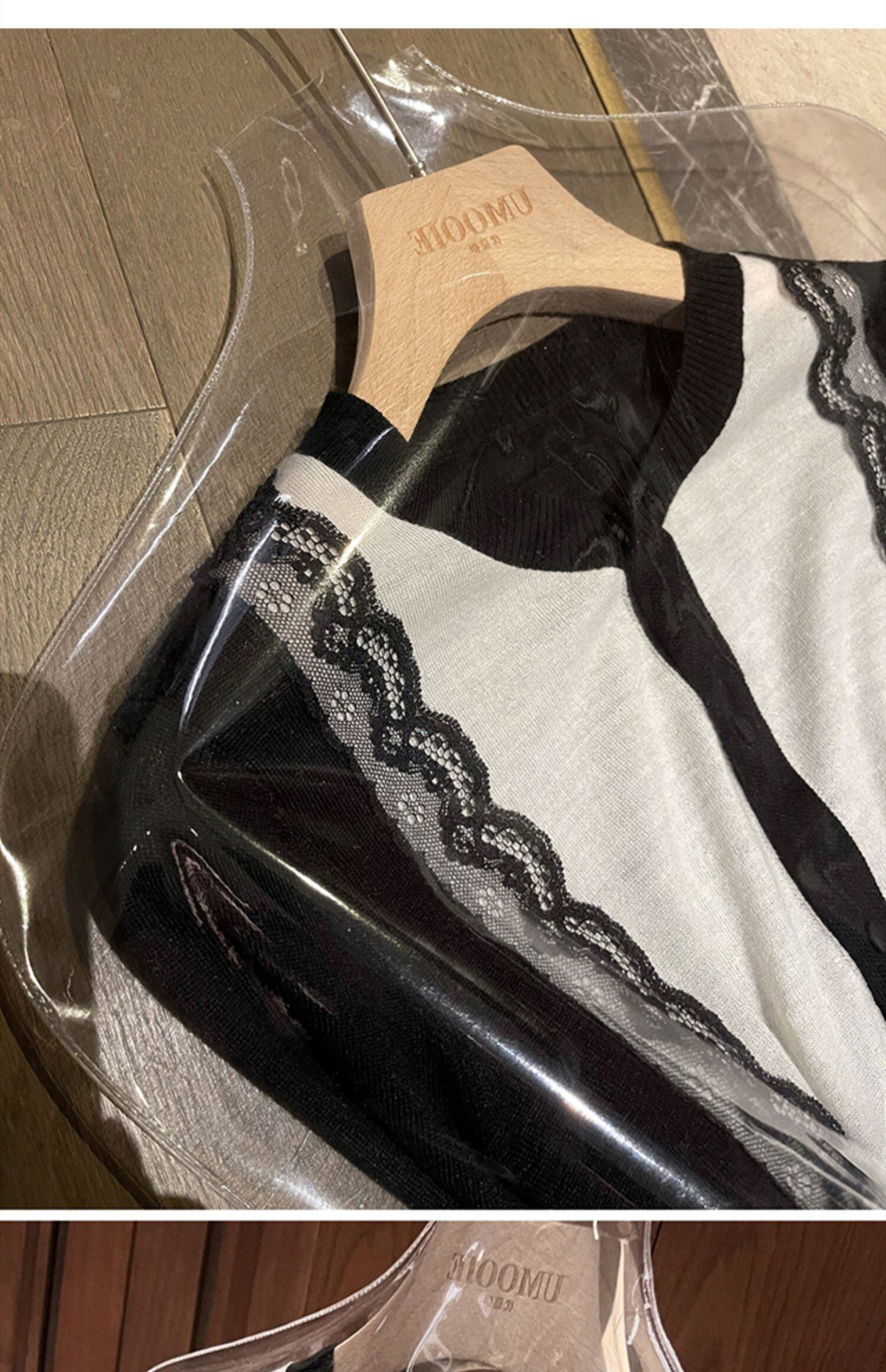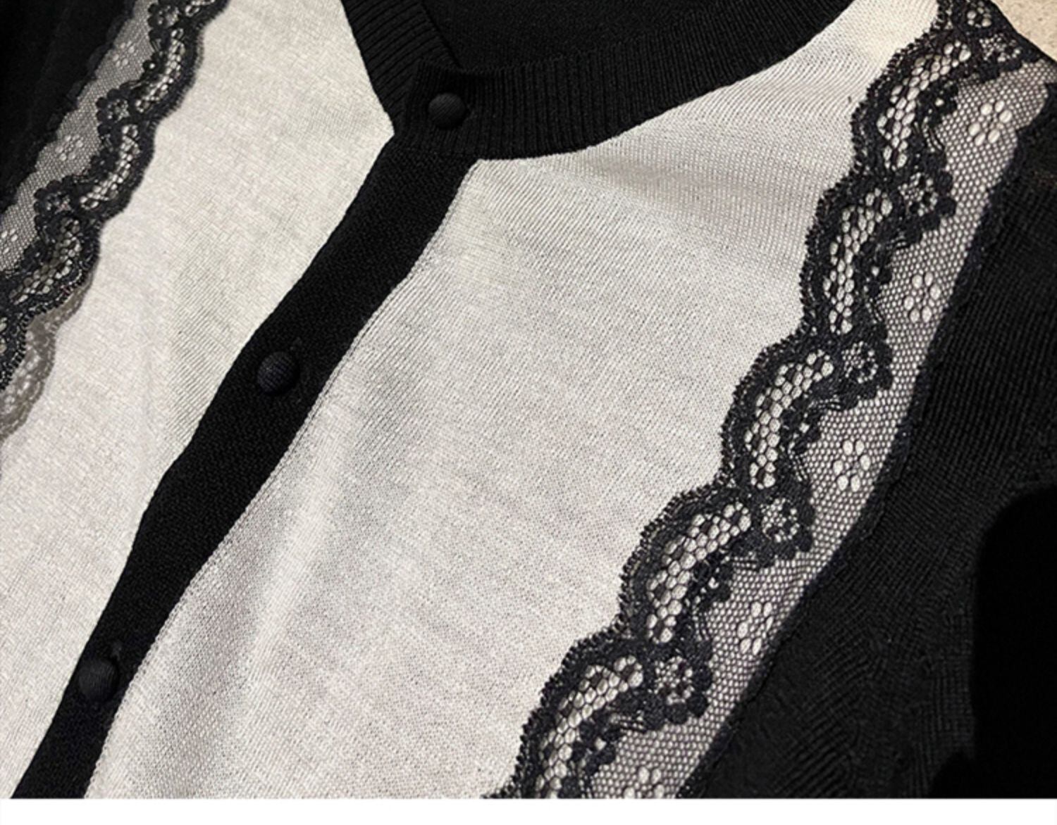 セーター2021Explosive、Western Style、Chic、Small Lace Bottoming Knit Cardigan Top レース カーディガン yingd83374708596