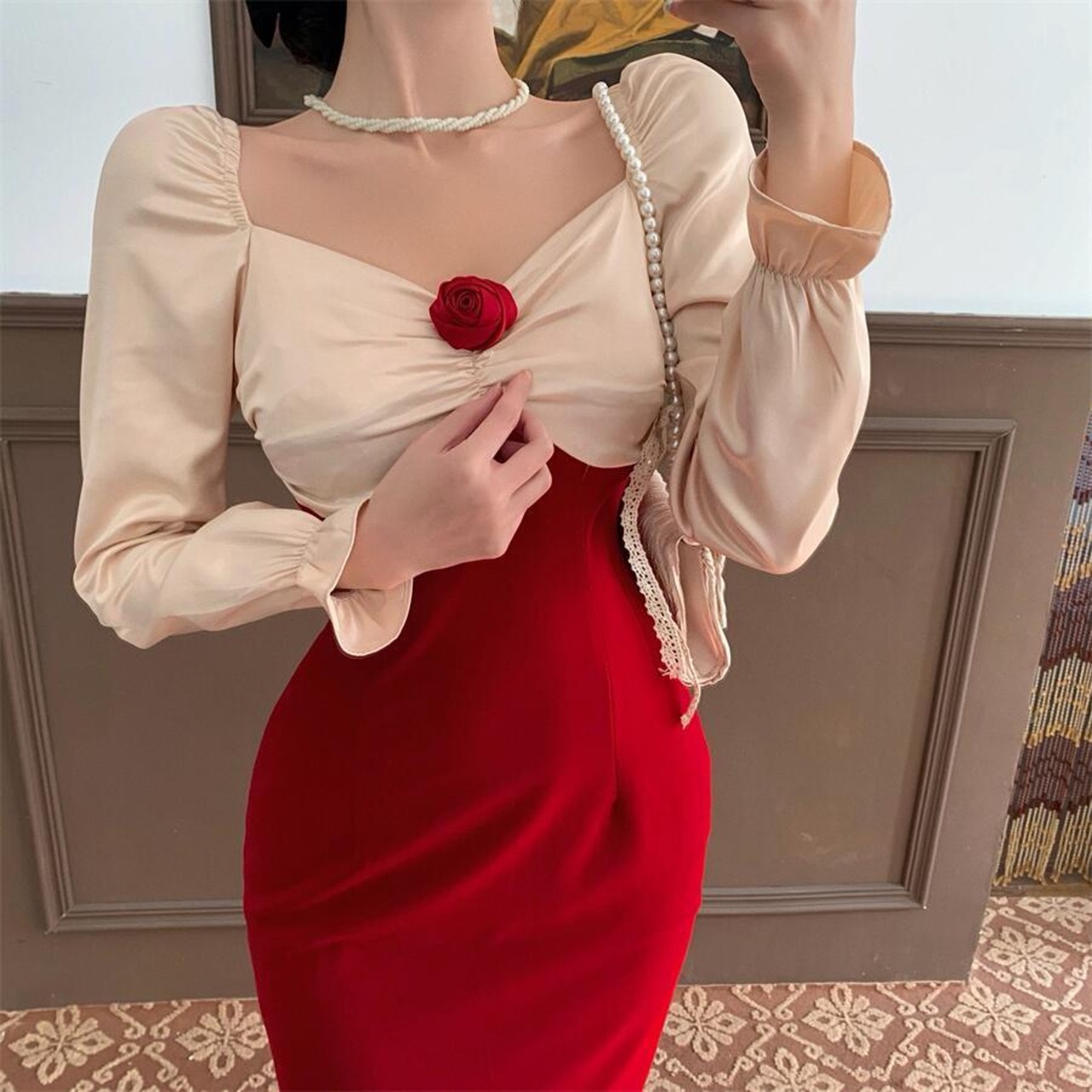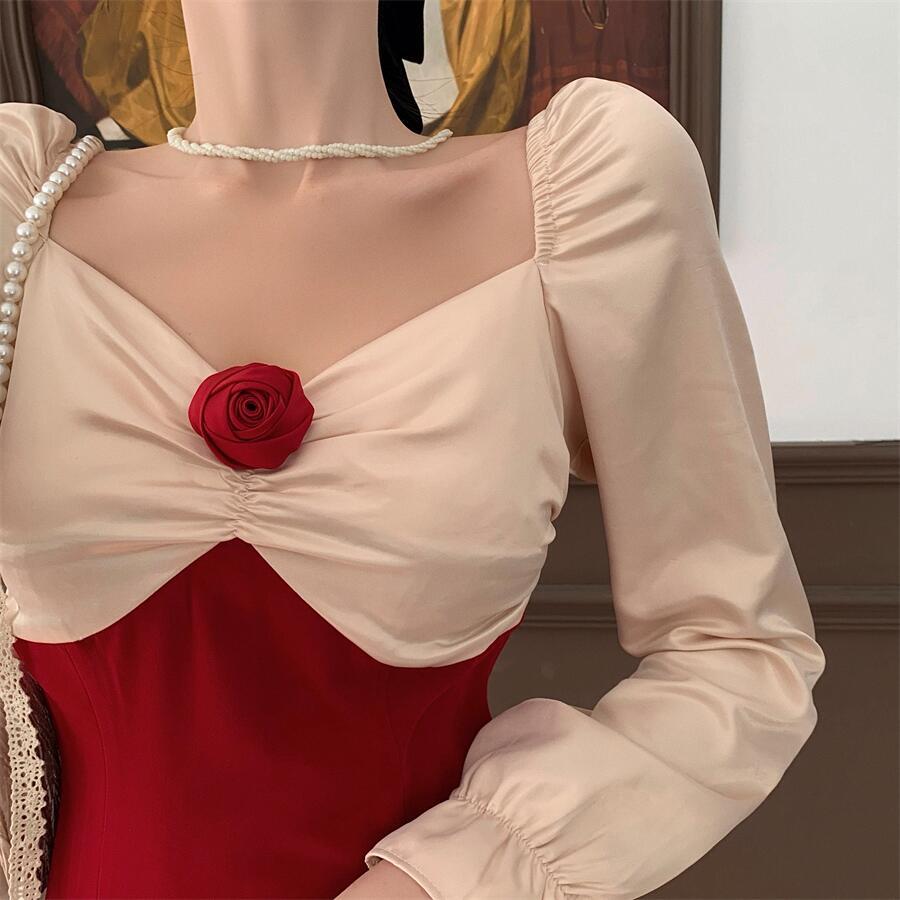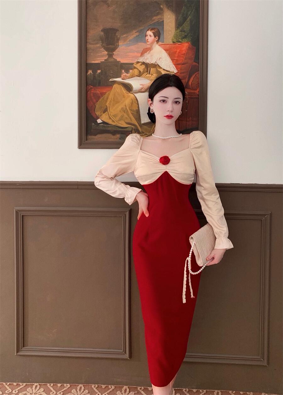 フレンチシックなデザイン感の揚げストリートロイヤルシスターライトおなじみスタイルロングスカートウエストは細くてハイエンドなライトラグジュアリードレス秋冬 オータム 秋物 ウィンター 冬物 yingd1365012569