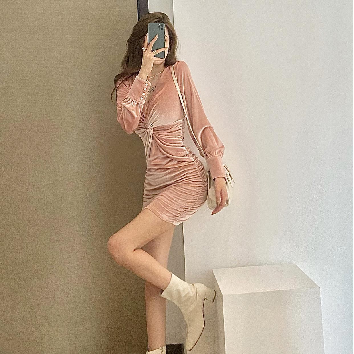 見事なスカート、ハイエンド、シックなデザイン、ニッチ、キンク、ウエスト、薄い、セクシー、ヒップパック、ベルベットのドレス、女性 スカート yingd88152265968