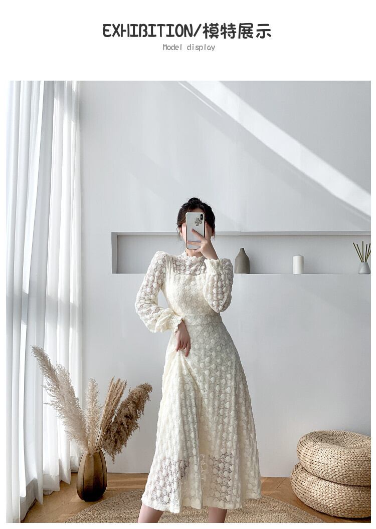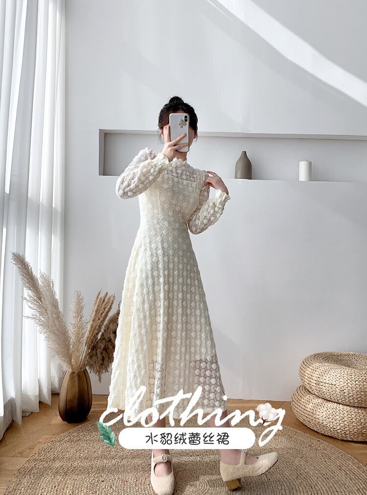 ネットレッド人気のハイエンドスカートスリムフィットと薄手の気質の女神ファン優しい風長袖レースワンピース秋冬 ロング オータム 秋物 ウィンター 冬物 yingd57551348749