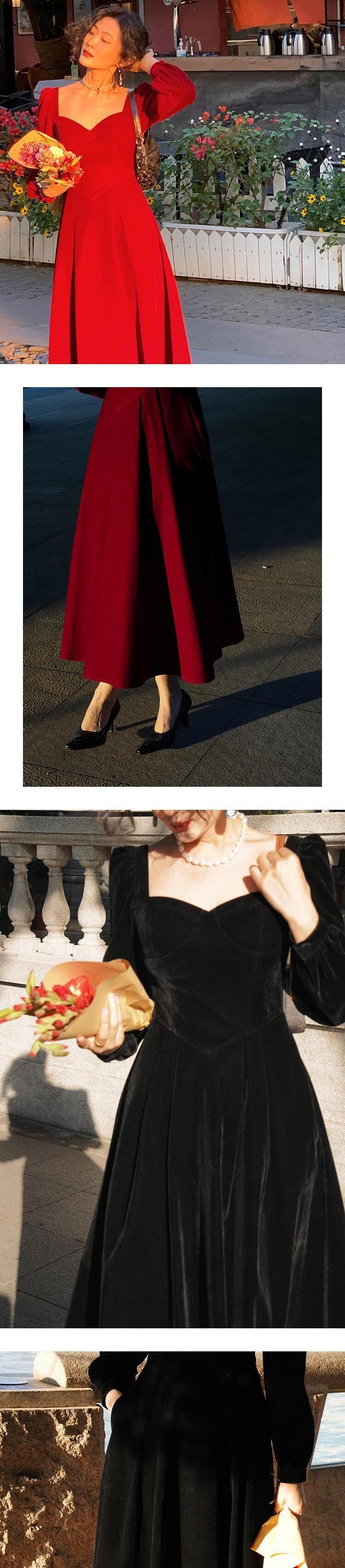 チャイニーズイヤーフェスティブウィメンズイヤーシャツアニュアルパーティードレスフレンチエンドスクエアカラーレッドベルベットドレス スクウェア yingd54008299703