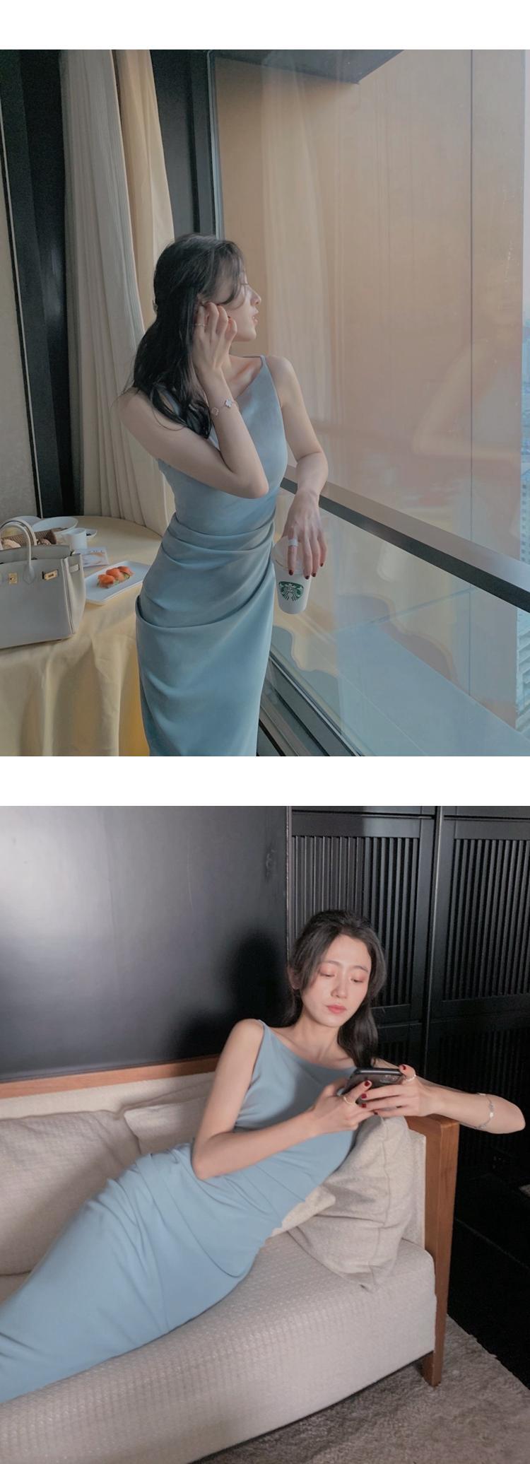 フランスのレディースサスペンダードレス女性2022年夏新しいハイエンドセンスロイヤルシスターライトおなじみスタイルワンショルダーロングスカート サマー 夏物 yingd34038115090