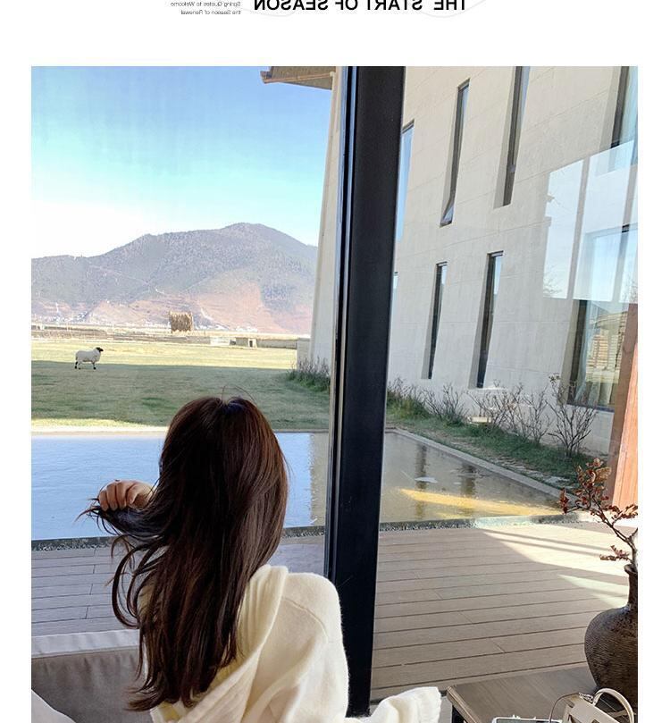 ロングオーバーザニーセータードレスルーズ、シン、レイジースタイル、フード付きジェントルクリームニットドレス yingd33077154468