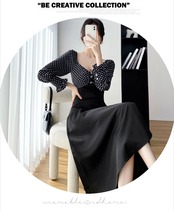 フランスのレトロな冷風女性のハイエンドセンスロイヤルシスターライトおなじみのスタイルデザインセンスステッチスクエアネックドレス女性の秋と冬 オータム 秋物 ウィンター 冬物 スクウェア yingd55951681014