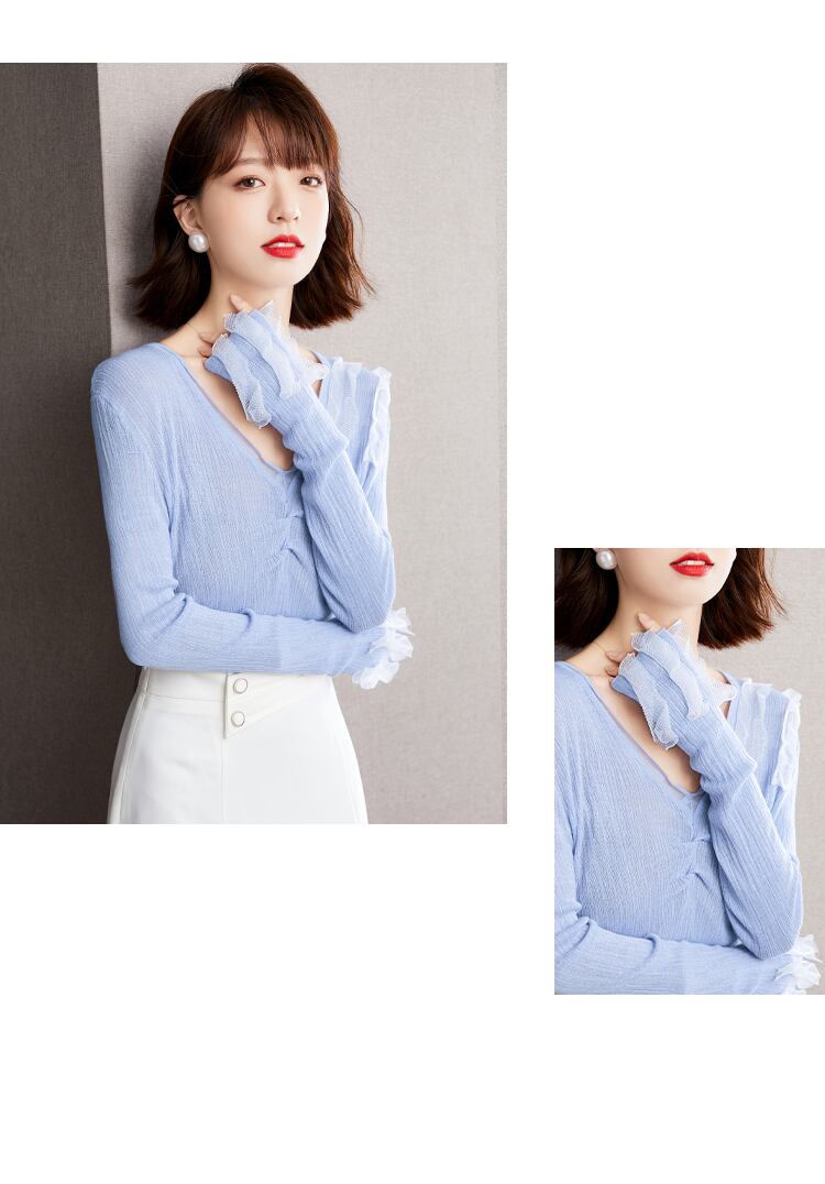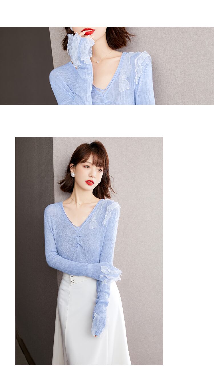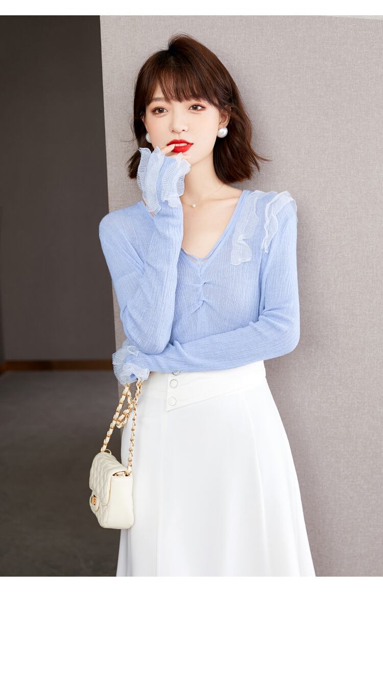 春物2022年新作レディースフレンチ優しいスタイルデザイン感のあるニッチ薄底ニットセーターフリルトップ スプリング yingd76995406273