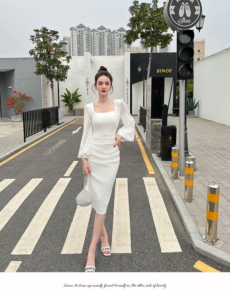 2022年春の新しい女性の優しい風ランタンスリーブシフォンドレスデザインプリーツセクシーヒップスカート スプリング 春物 yingd21806816343