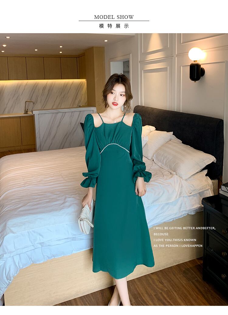 春服2022年新作女性フレンチレディロイヤルシスターライトおなじみスタイルシックなデザインサスペンダードレス女性ロングスカート スプリング 春物 yingd20438192684