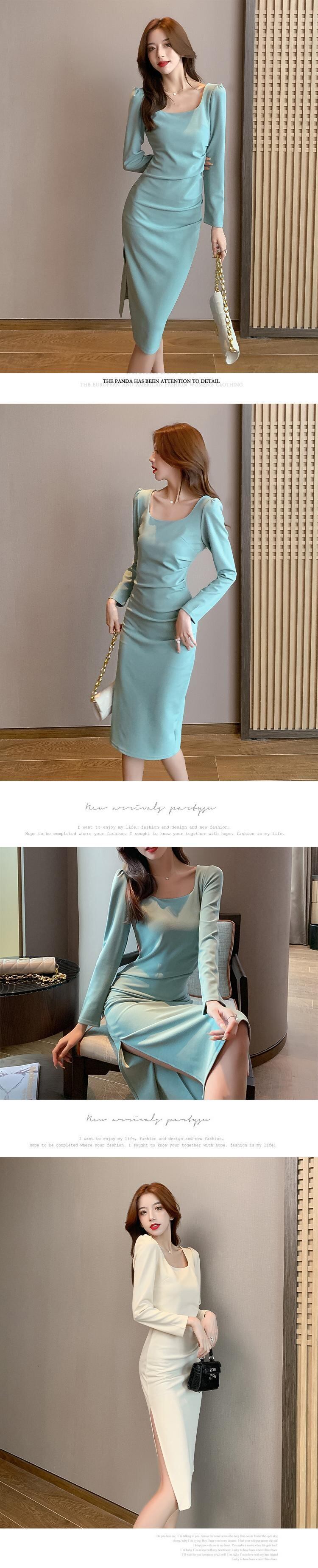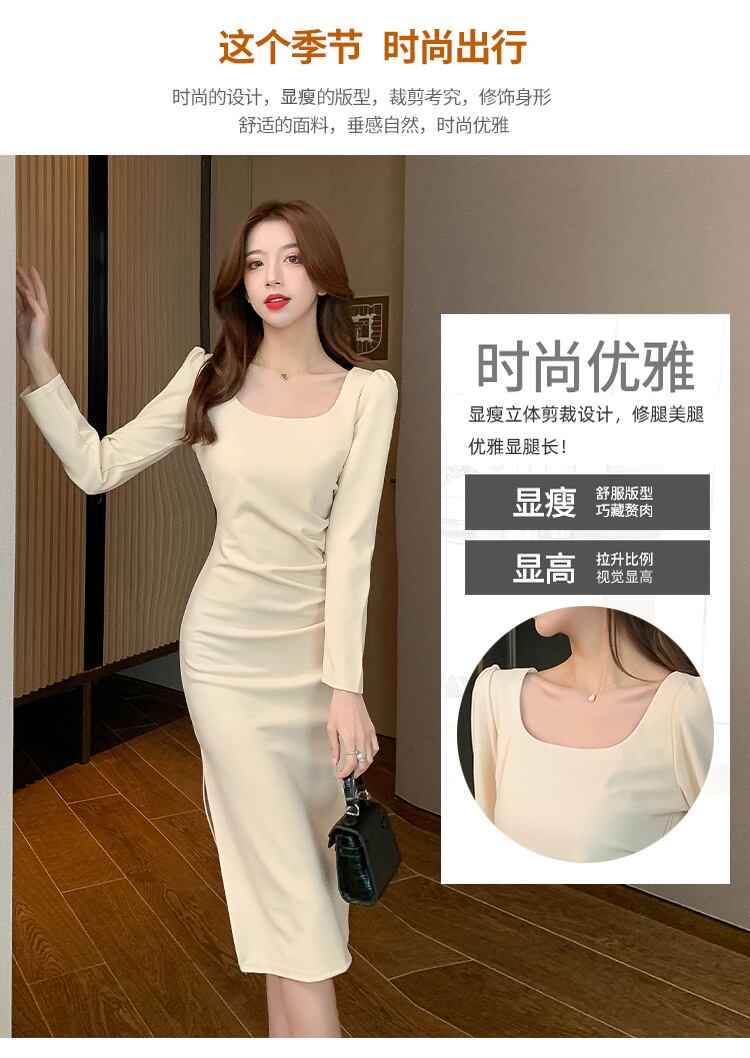2022年春の新しい女性のフレンチジェントルスタイルティーブレイクスリムフィットとスリムシックなハイエンドスクエアカラードレスの女性 スプリング 春物 スクウェア yingd47199921571