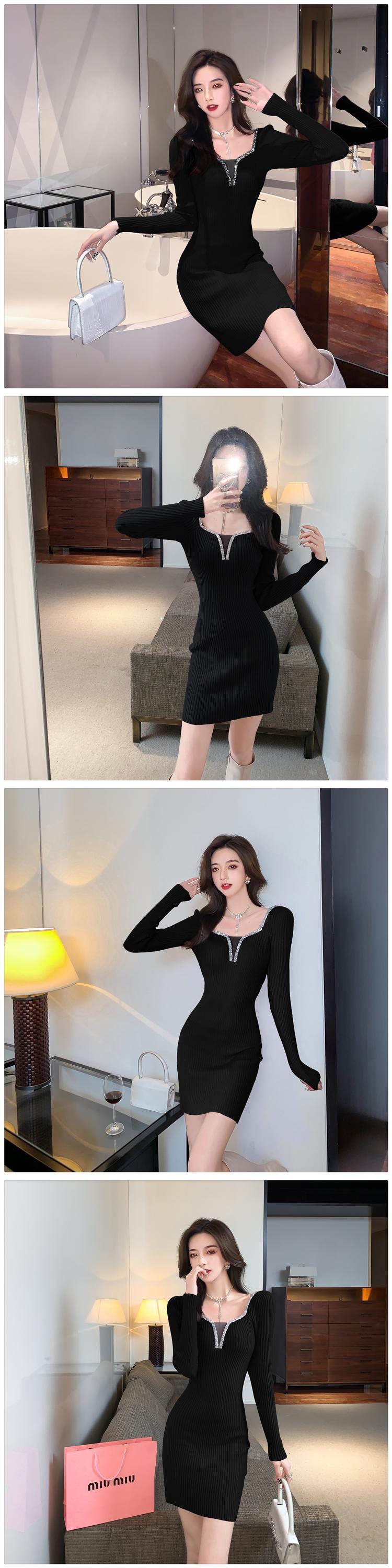 見事なスカートハイエンドライトラグジュアリーレディーススリムフィットとスリム気質セクシーなダイヤモンドをちりばめたヒップニットドレス秋と冬 オータム 秋物 ウィンター 冬物 スカート yingd95076133204