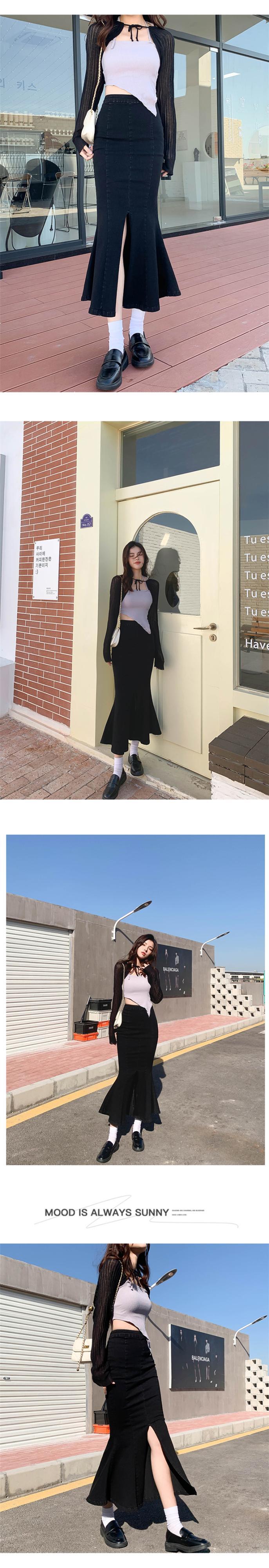 ヒップ満載のデニムスカート2022年春秋ハイウエストと薄手のミドル丈ブラックフィッシュテールスカート ハイウェスト スプリング 春物 オータム 秋物 yingd45196395926