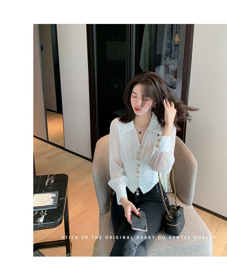 2022年春の新しいシックなハイエンド長袖シフォンシャツレディーストップデザインウエストウエストスモールシャツ ロング スプリング 春物 yingd39342589312