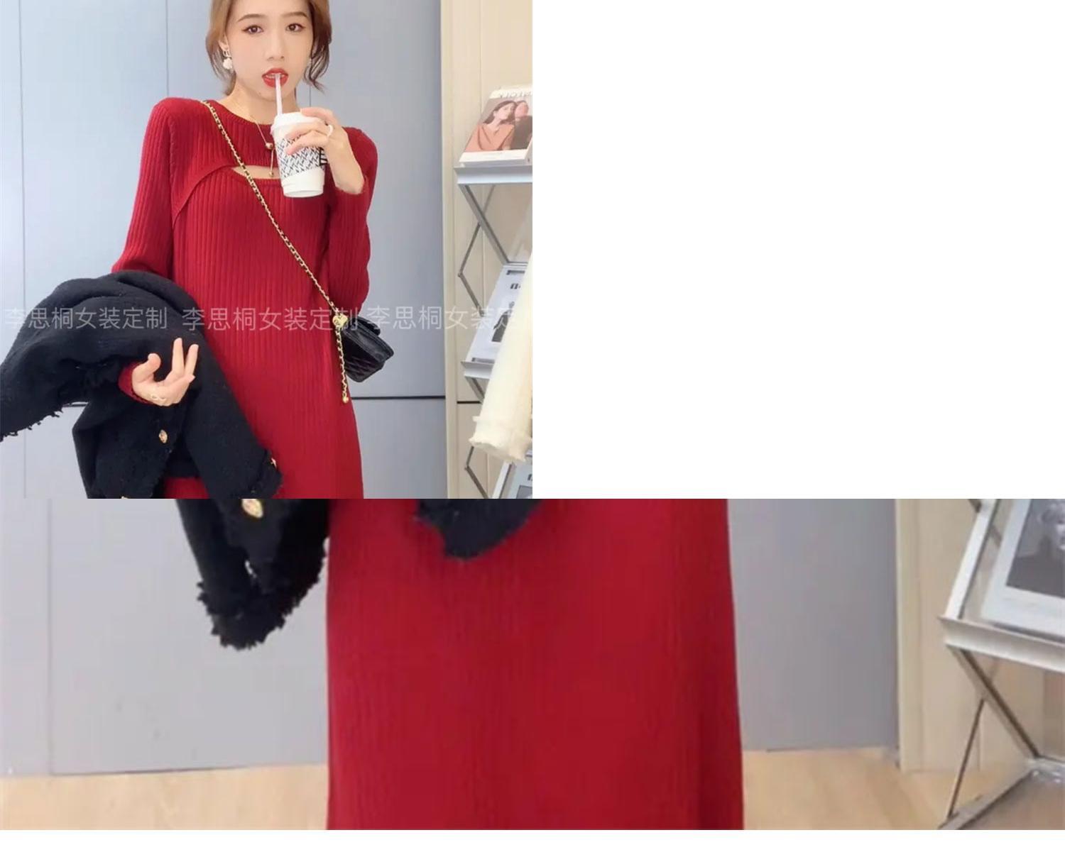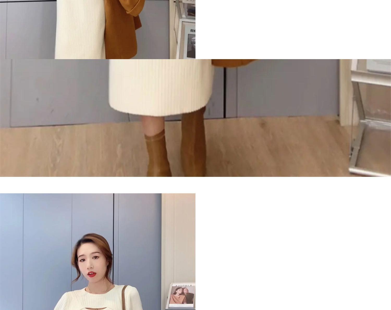 コートと膝上長靴のセータースカート、ルーズで薄い、怠惰なスタイルのクリームニットドレスの秋と冬の女性 ロング オータム 秋物 ウィンター 冬物 yingd62768010869