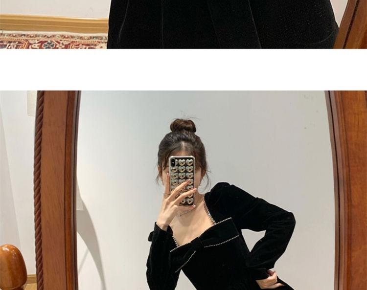 フレンチレトロヘップバーンスタイルリトルブラックドレス毎年恒例のミーティングドレスハイエンドライトラグジュアリーレディーススクエアカラーベルベットドレス冬 ウィンター 冬物 スクウェア yingd14753725962