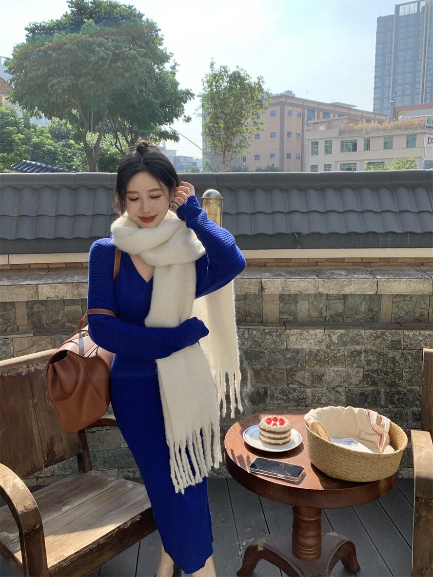 ロングニーセータードレス見事なスカートセンスライトラグジュアリーセレブリティクラインブルーニットドレスレディース秋冬 オータム 秋物 ウィンター 冬物 スカート yingd4524366730