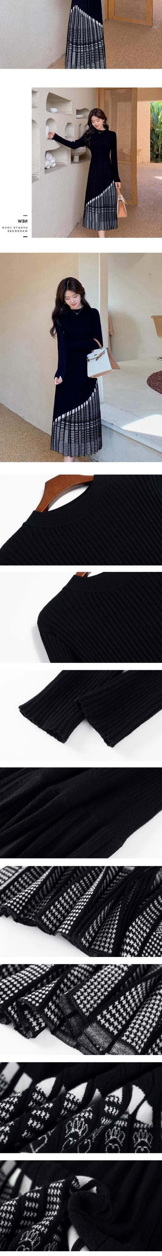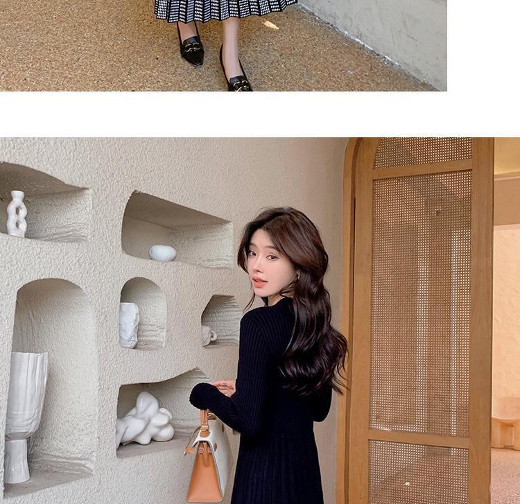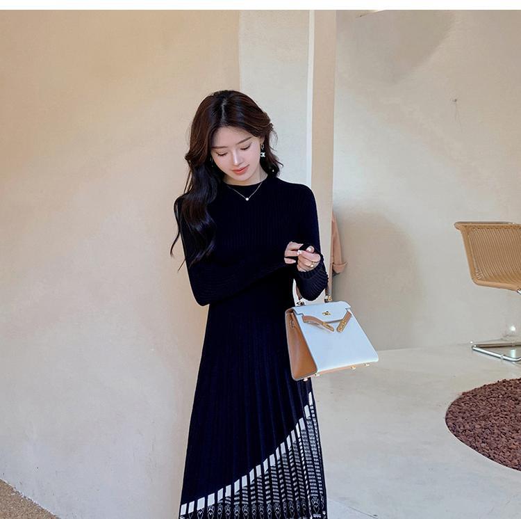 フランスのレトロな見事なハイエンドスカートウエストスリム気質デザインプリーツニットドレス女性の秋と冬 オータム 秋物 ウィンター 冬物 yingd3380233296