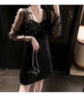 春の婦人服2022年新作フレンチライトラグジュアリーハイエンドスリムスリム長袖メッシュステッチドレスレディース ロング スプリング 春物 yingd627095785