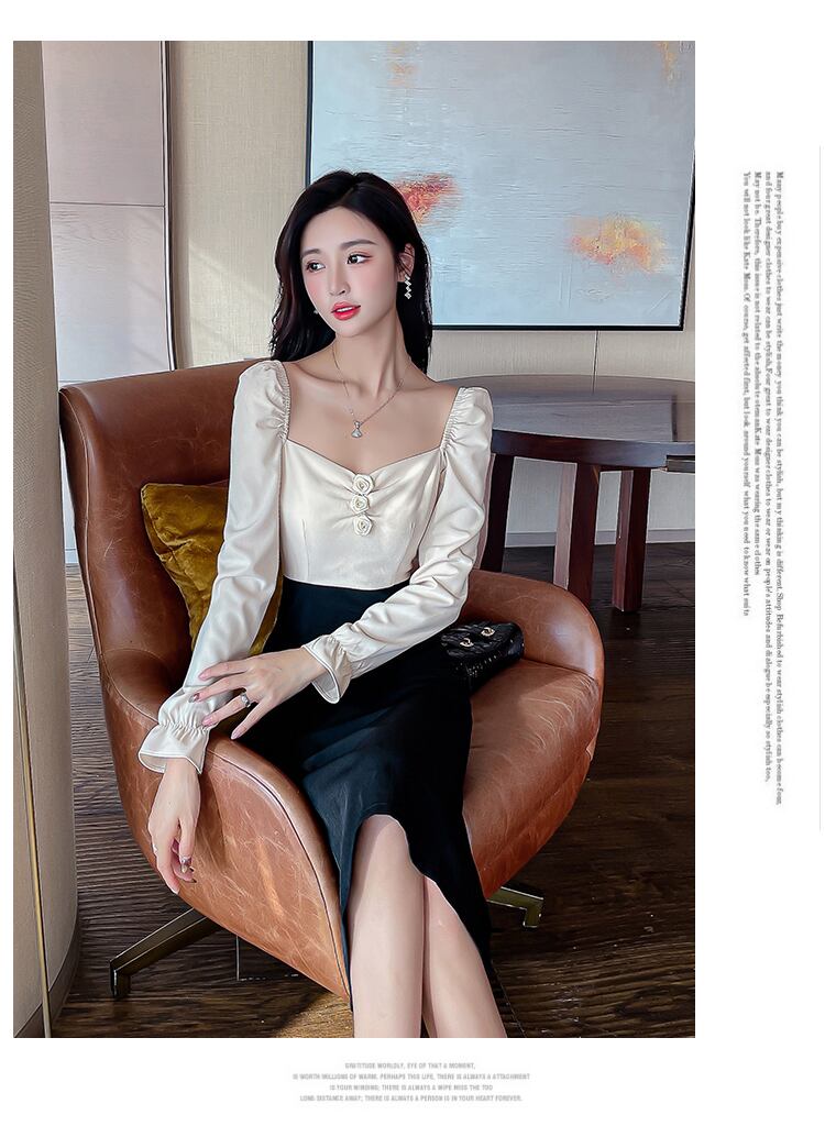 2022年春新作レディースフレンチシックハイエンドセンスロイヤルシスターライトおなじみスタイルスクエアカラーパフスリーブステッチドレス スプリング 春物 スクウェア yingd97967701404
