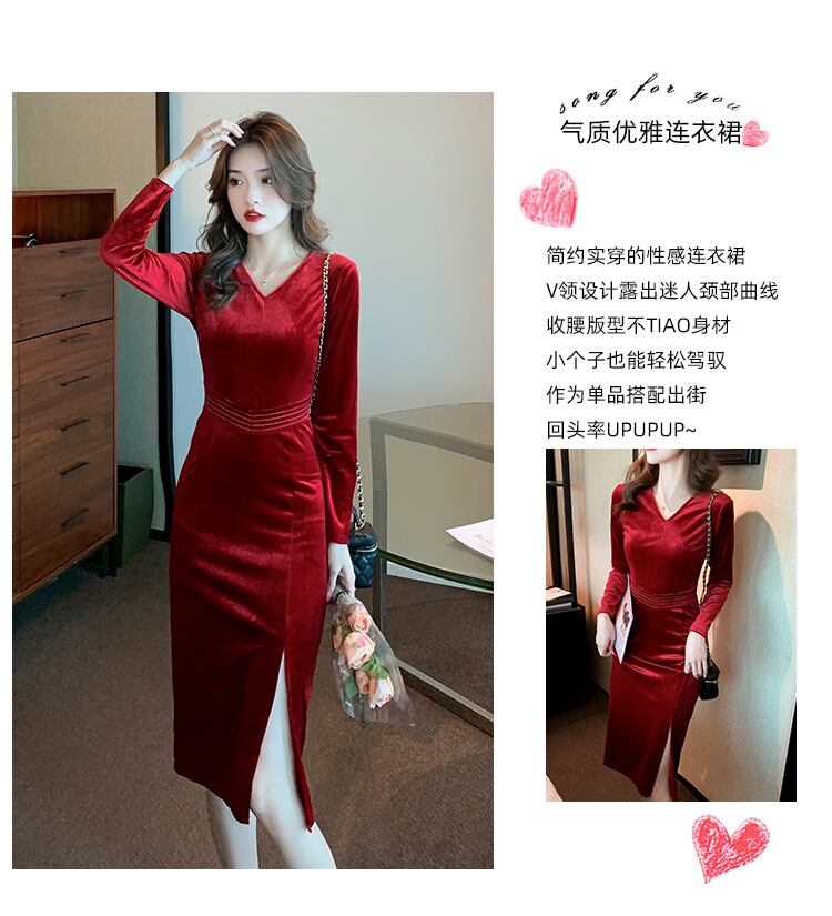 見事なスカートハイエンドライトラグジュアリーレディーススリムフィットと薄い気質セクシーなスプリットベルベットドレス女性の秋と冬 オータム 秋物 ウィンター 冬物 スカート yingd45112048794