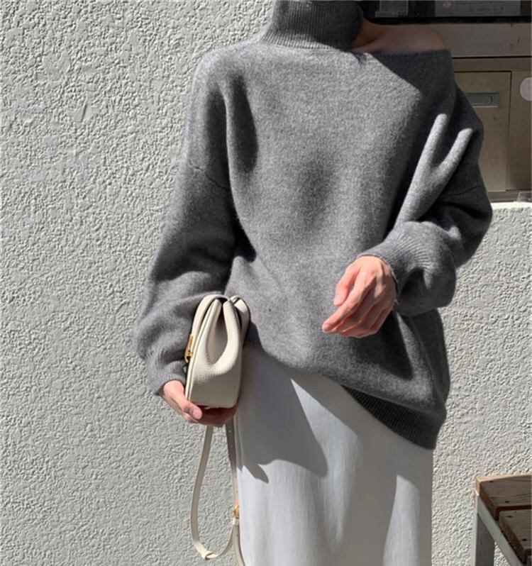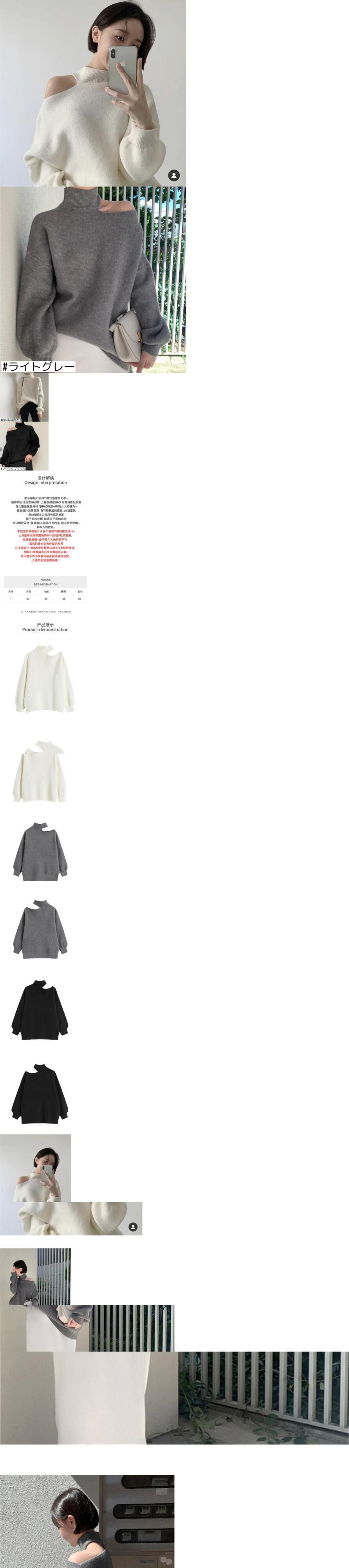 フランスの怠惰な風の緩いプルオーバーシンプルなセーターの女性の秋と冬の慎重なオフショルダー気質の女性のニットウェア オータム 秋物 ウィンター 冬物 yingd19764172200