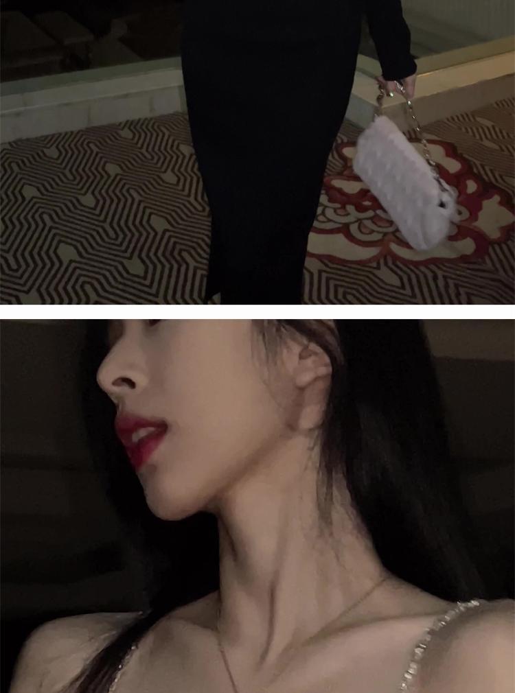 2022年春の新しいスタイルのダイヤモンドチェーンニットドレスフェミニンな気質オフショルダースリムスリットサスペンダーロングスカート スプリング 春物 yingd11208686999