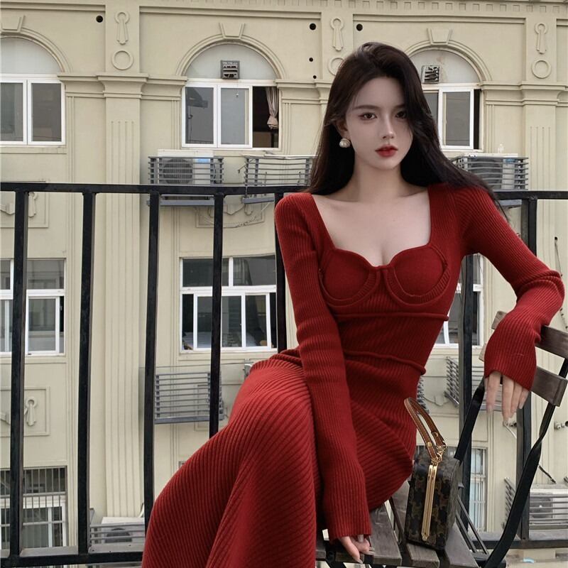 年のお祝いの婦人服年のシャツ年次会議ドレスフランスの女性のティーブレイクロングドレス赤いドレス女性の春と秋 レッド スプリング 春物 オータム 秋物 yingd75577228513