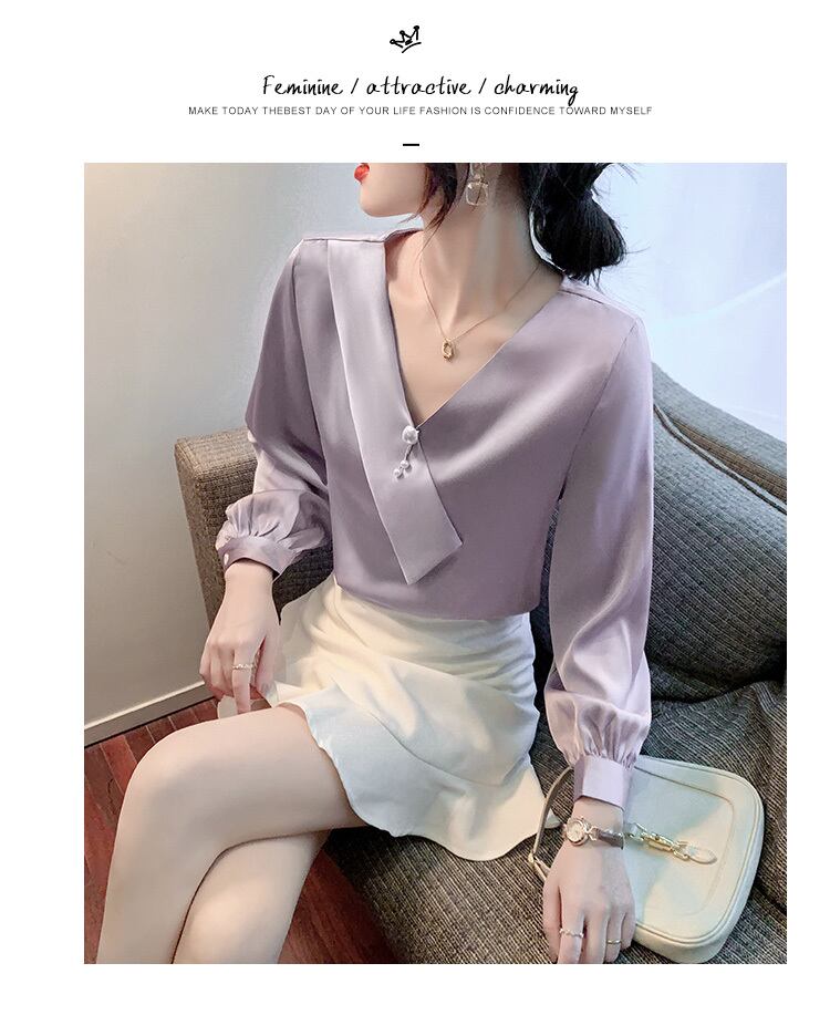 春物2022年新作レディースフレンチデザインセンスニッチ長袖シフォンシャツ優しいスタイルとエインスタイルのインナーシャツ ロング スプリング yingd52890975736