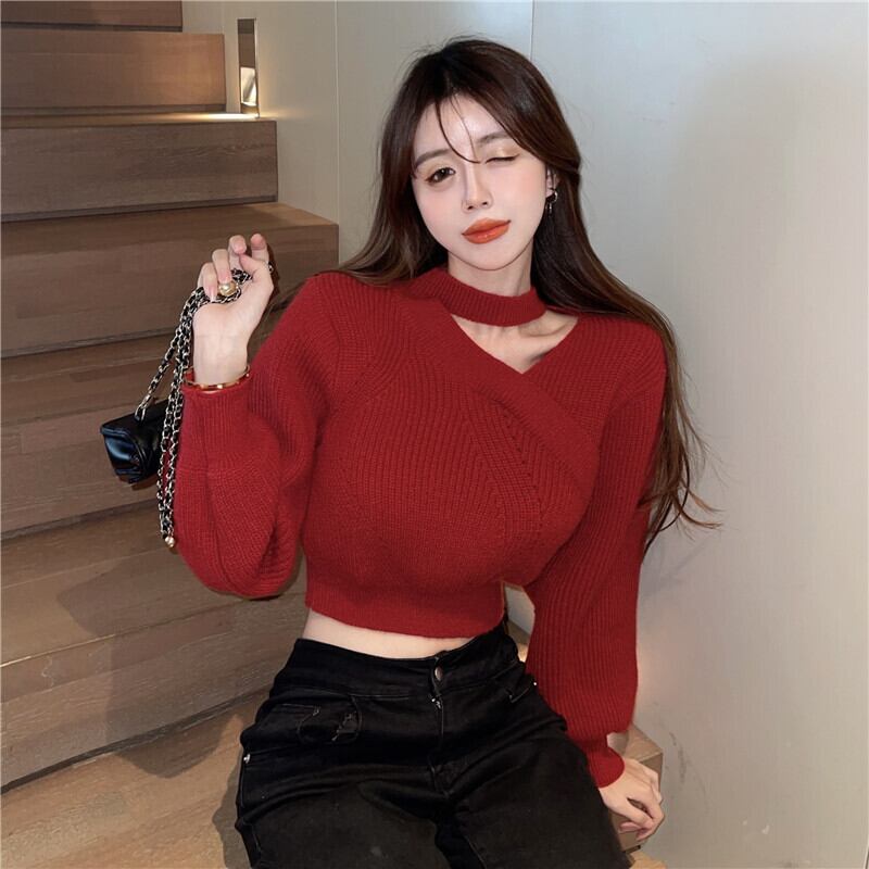 外側はデザイン感のあるセーター、女性の秋冬、アイアンスタイル、内側はスリムに見える、長袖プルオーバー、Vネックホルターニットセーター女性 ロング オータム 秋物 ウィンター 冬物 yingd76865257069
