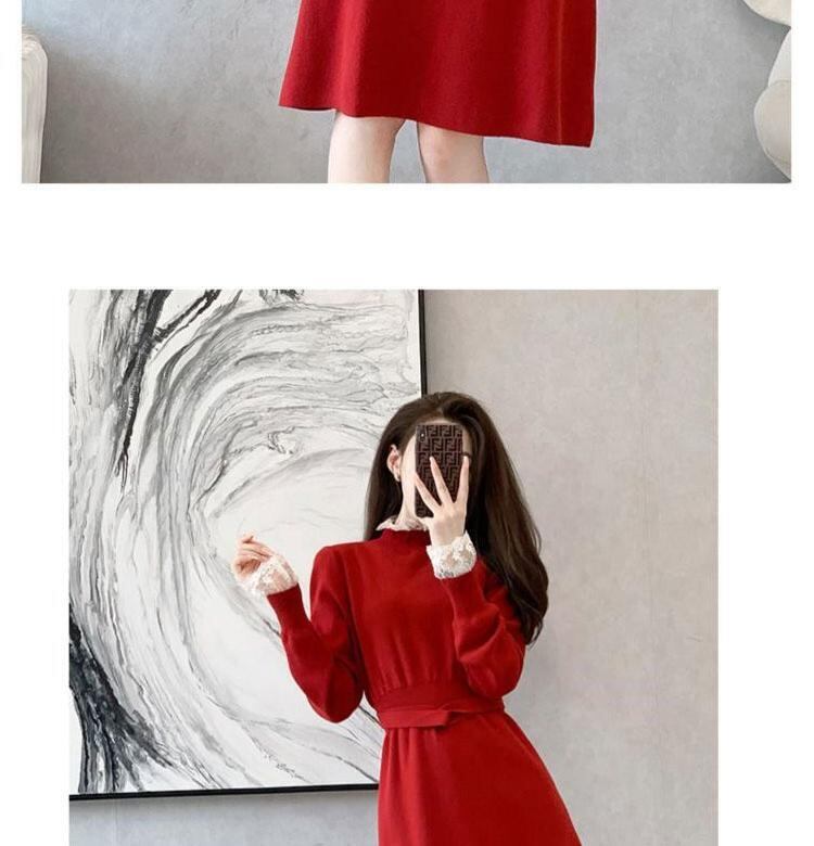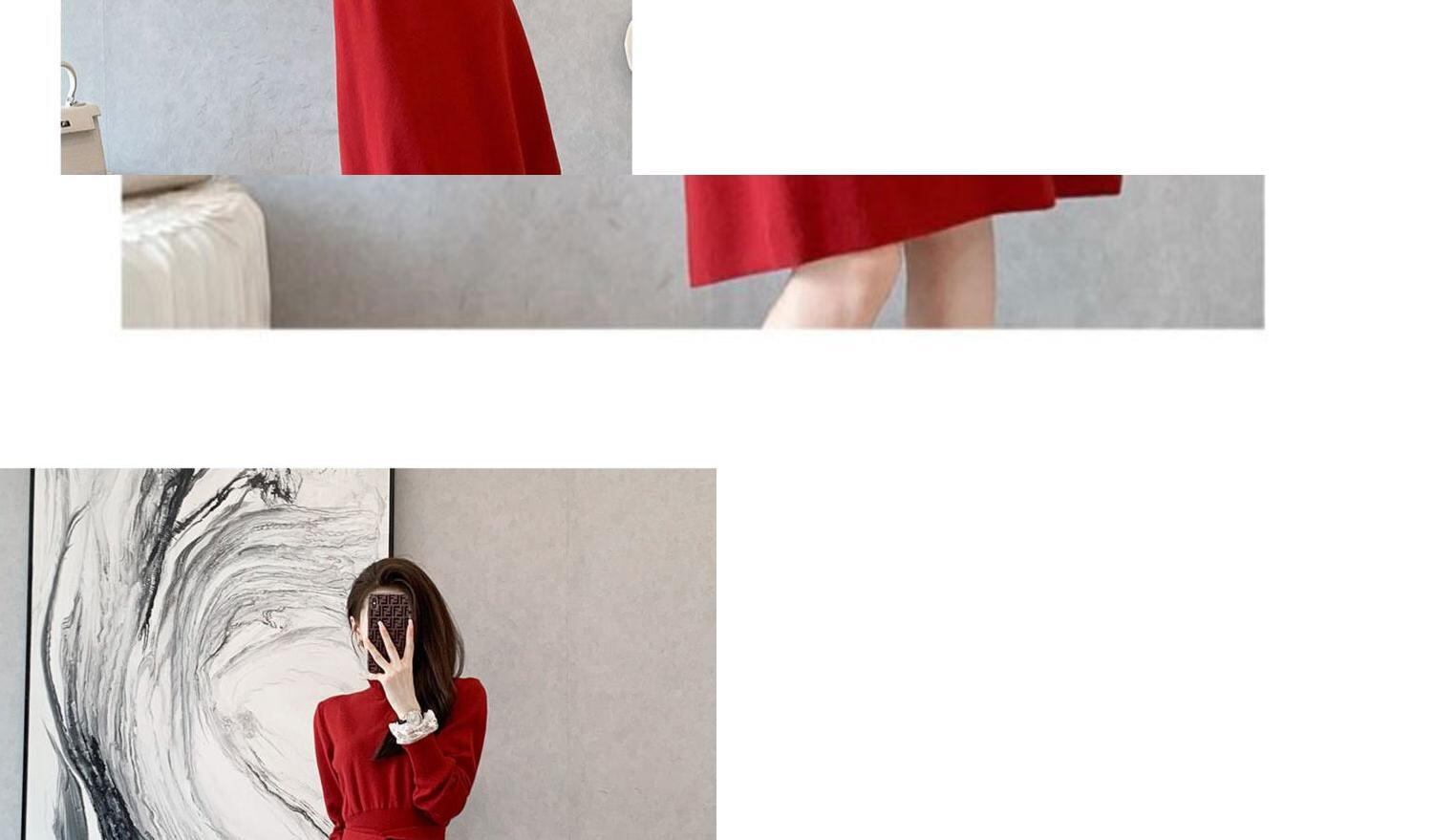 シックでハイエンドなクリスマスの女性のドレスはウエストが薄く、気質の女神ファンの長袖ニットの赤いドレス冬 ロング レッド ウィンター 冬物 yingd15286890904