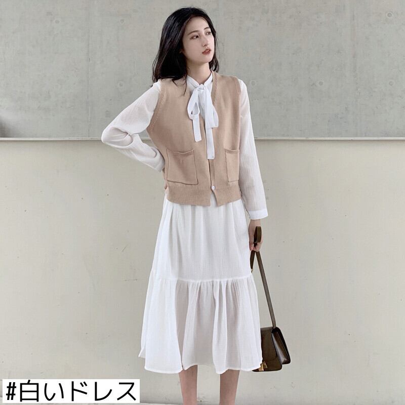 色:白いカーディガン,白いドレス,アプリコットカーディガン,黒いドレス,ホワイトカーディガン+ブラックドレス,アプリコットカーディガン+白いドレス