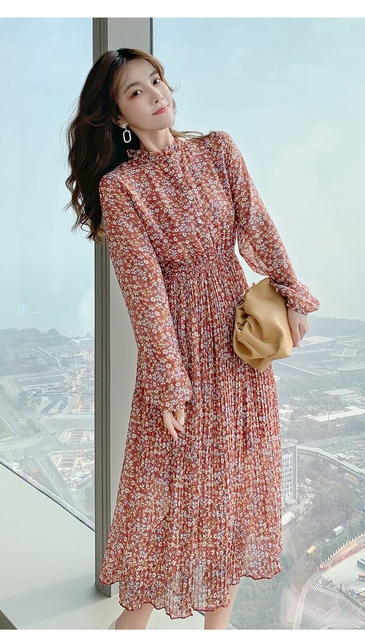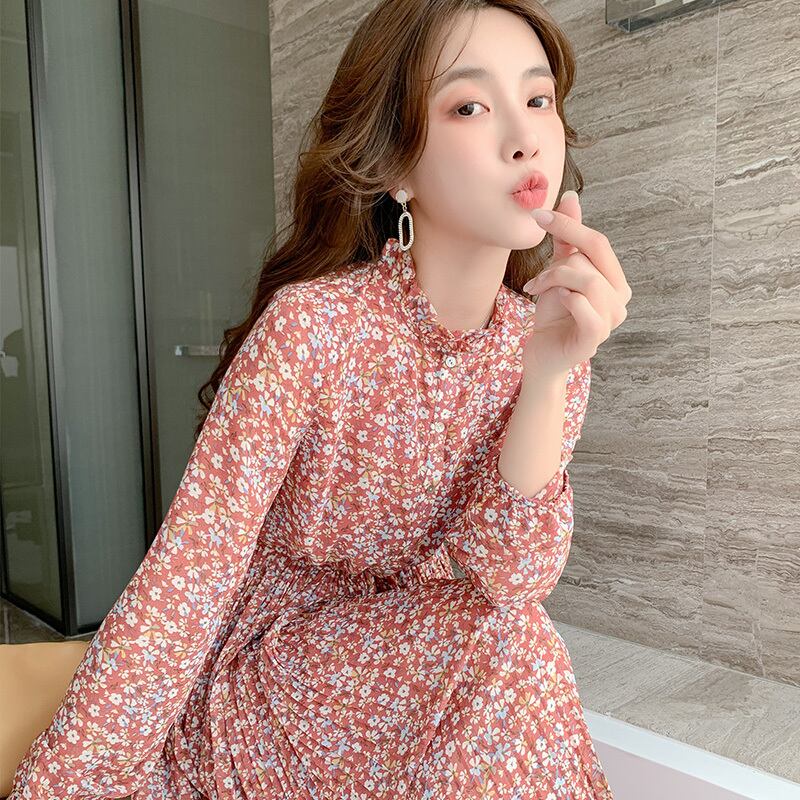 -高品質の初恋ティーブレイクスカート2022年春の新しい女性のウエストと薄い気質のシフォンフローラルドレス スプリング 春物 花柄 yingd55643316345