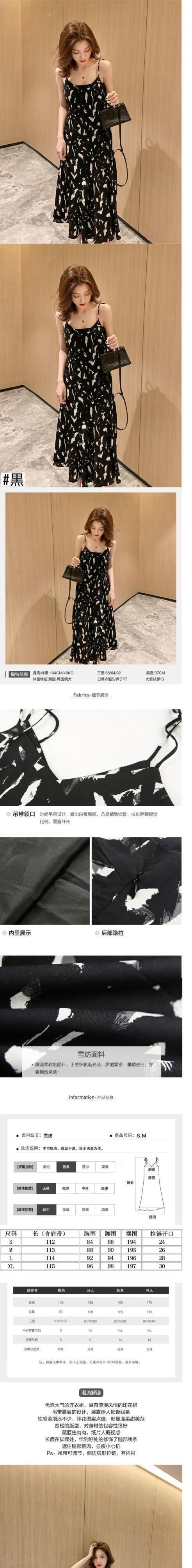 フランスの海辺のホリデースカート2019夏の新しいミドル丈プリントプリーツサスペンダーシフォンドレス女性 サマー 夏物 yingd75347866284