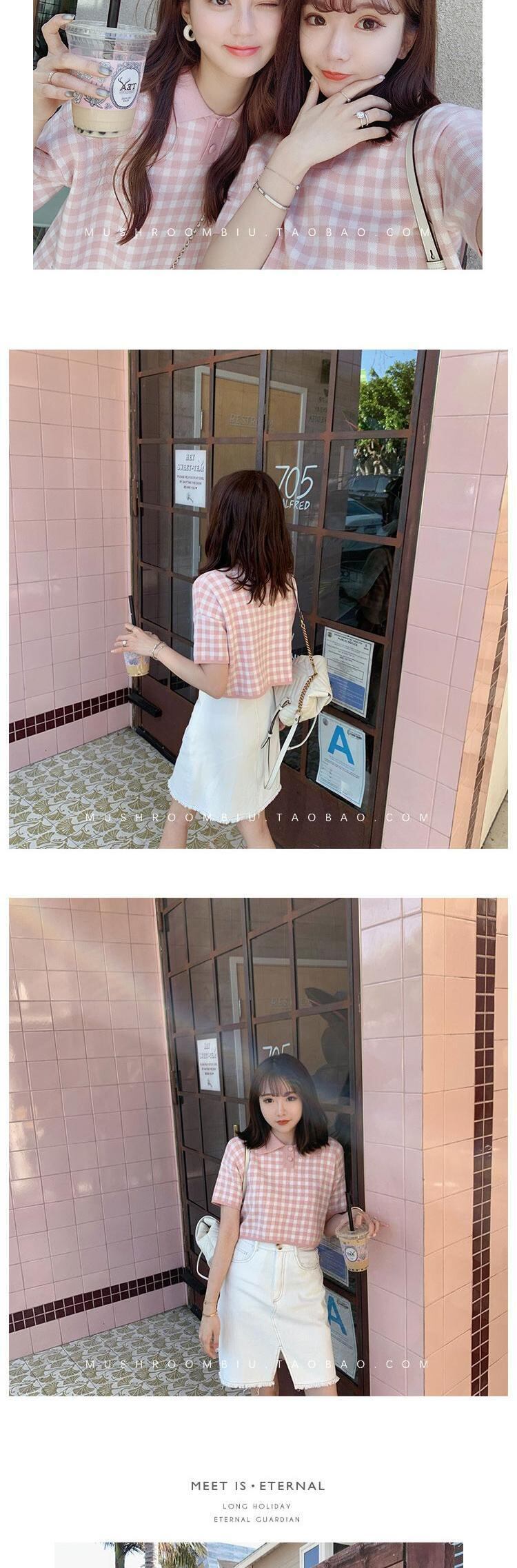 2020年夏バージョンの友達半袖POLOニットドレス女性フレンチレトロチェック柄フェアリースカート サマー 夏物 yingd98880672328