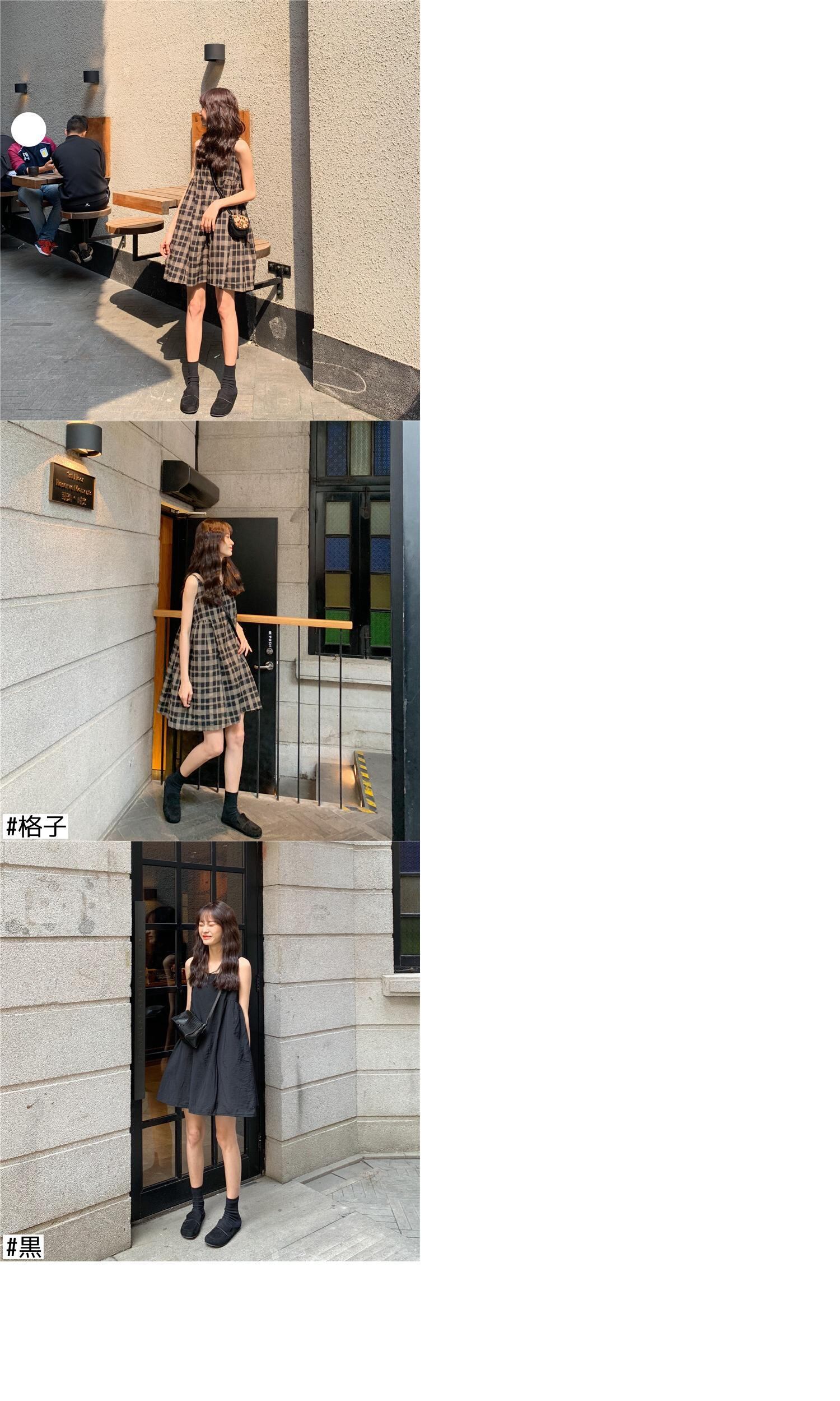 2019夏新バージョンスリムAラインショートドールスカートルーズ学生香港スタイルレトロドレス女性 サマー 夏物 yingd65289031422