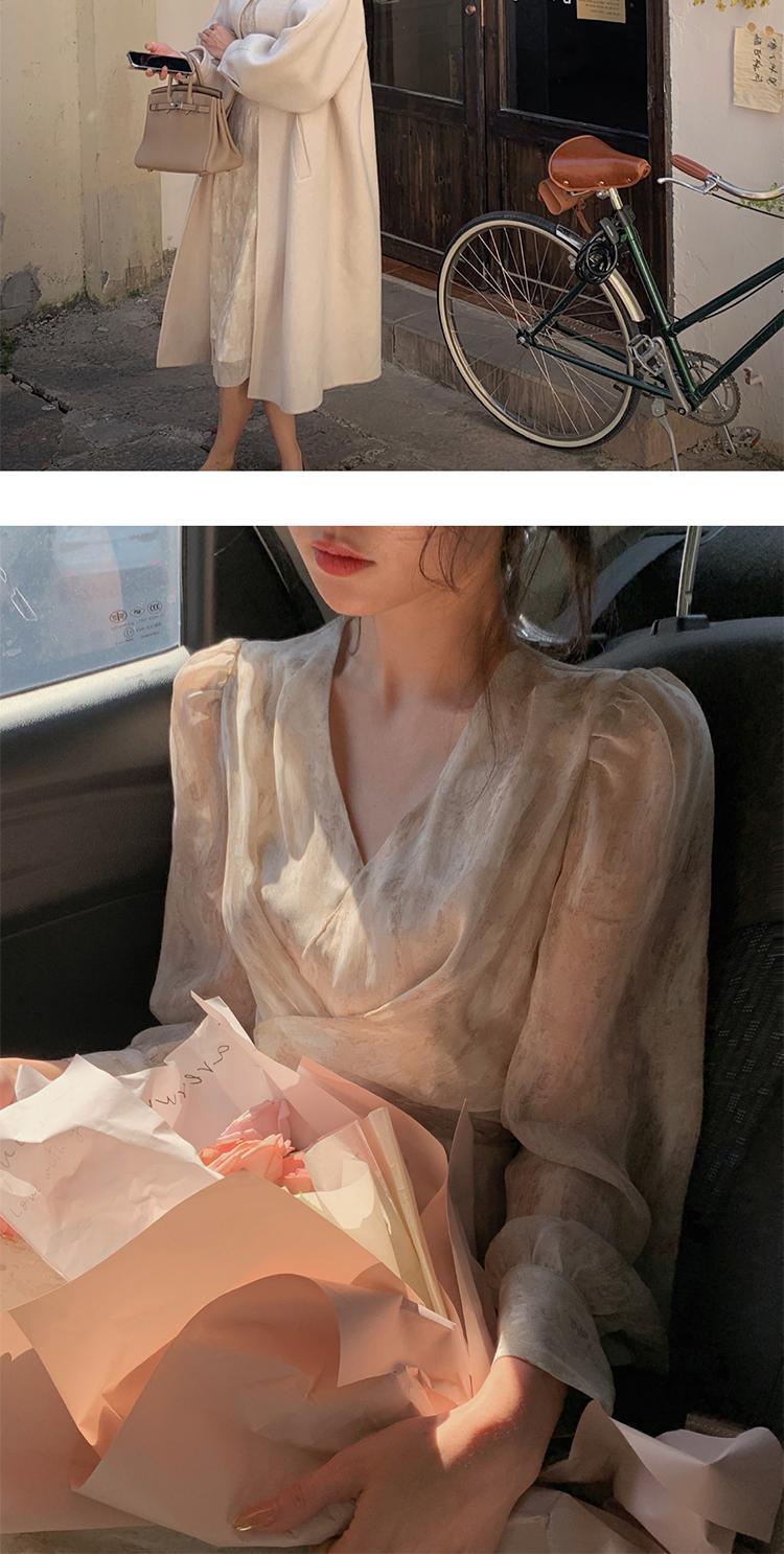 フレンチウエストVネックレトロドレスレディース2022年春新ウエストウエストスリムで優しいスタイルのティーブレイクフローラルドレス スプリング 春物 花柄 yingd96478158662
