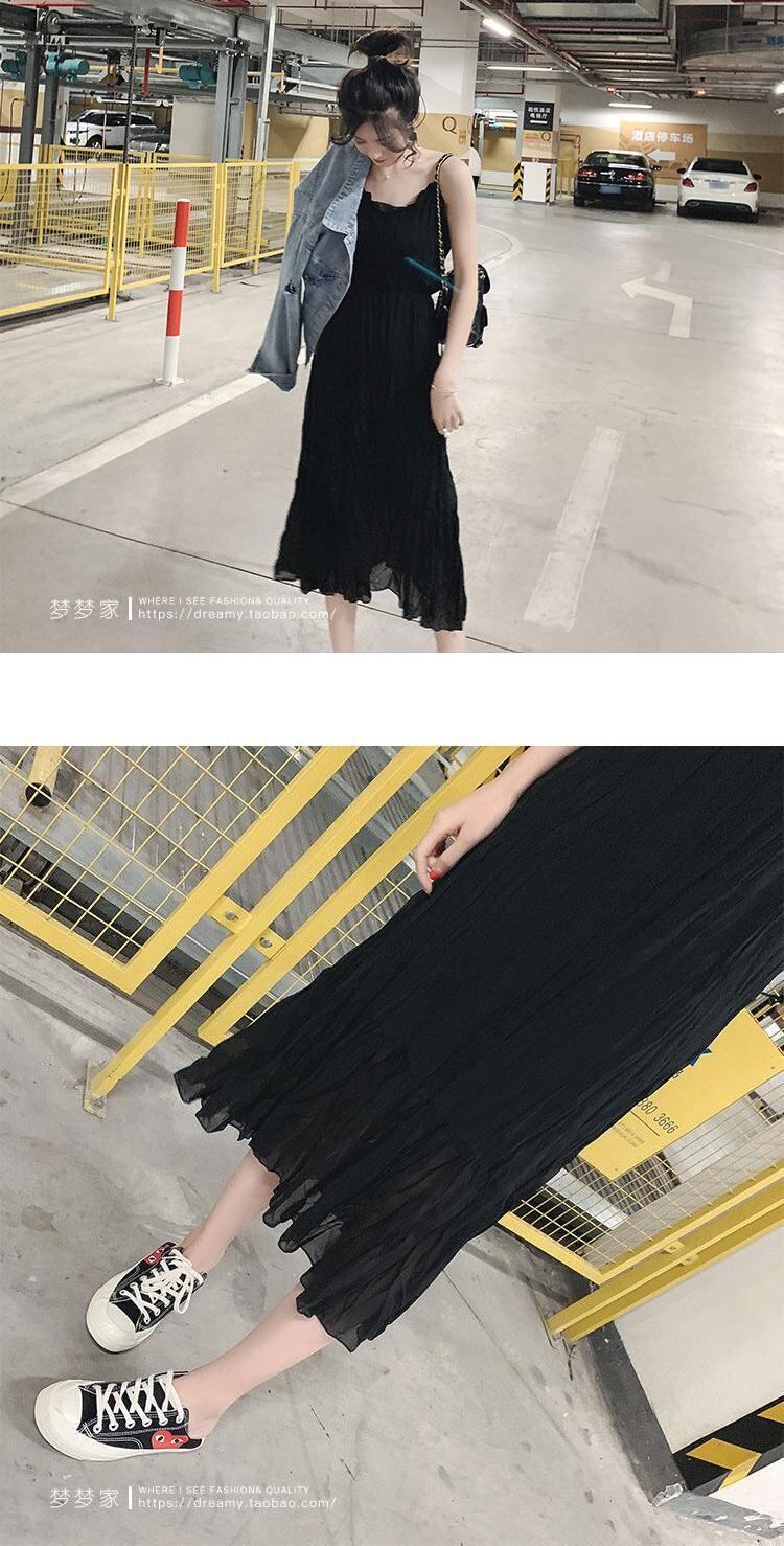 2019夏の新しい非常に妖精のプリーツサスペンダードレス女性のシックなハイウエストが膝のミドル丈のスカートにフリル ハイウェスト サマー 夏物 yingd47021029795