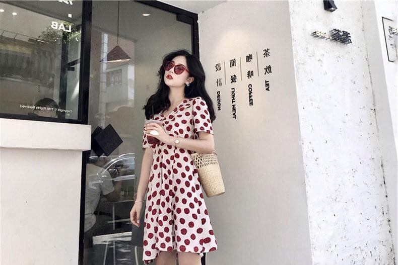 プーケットシーサイドリゾートビーチスカート女性2019夏新しい小さな新鮮なVネックシフォン水玉ドレス サマー 夏物 yingd51120090056