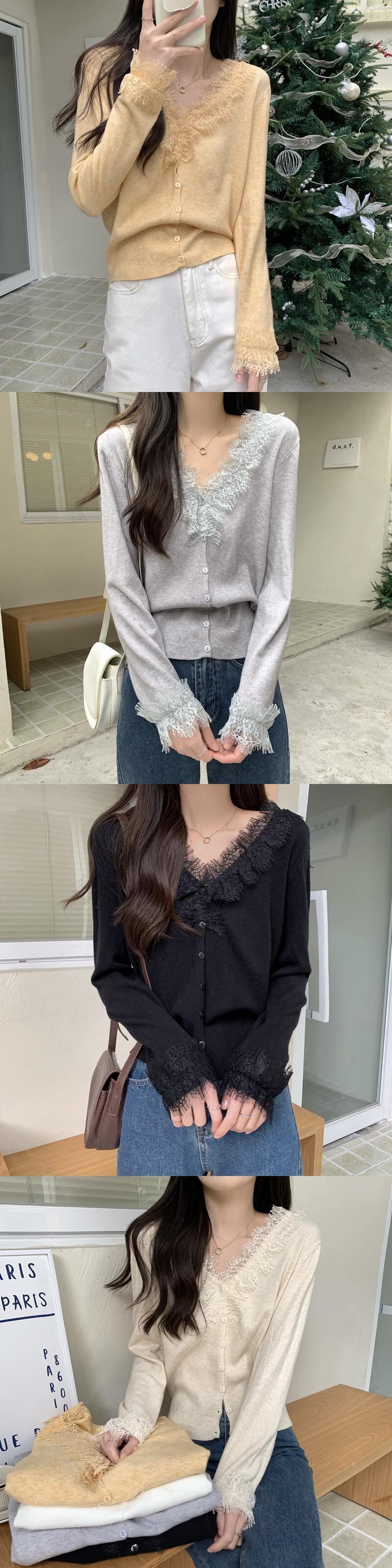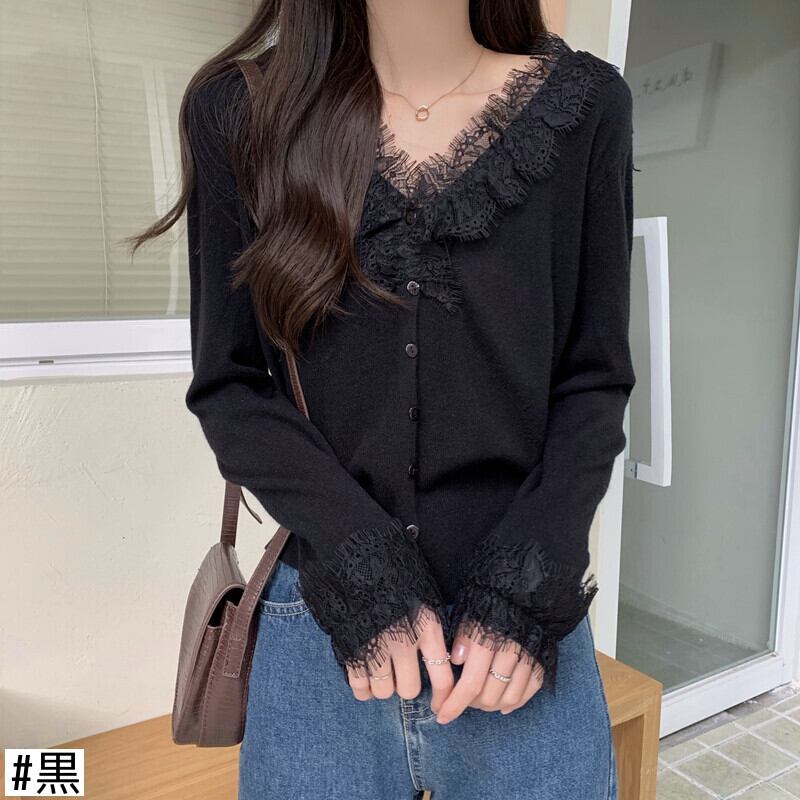 2022年初春新作優しいスタイルデザインセンスニッチボトミングセーターVネックレースステッチカーディガンセーター スプリング 春物 yingd45864516369