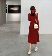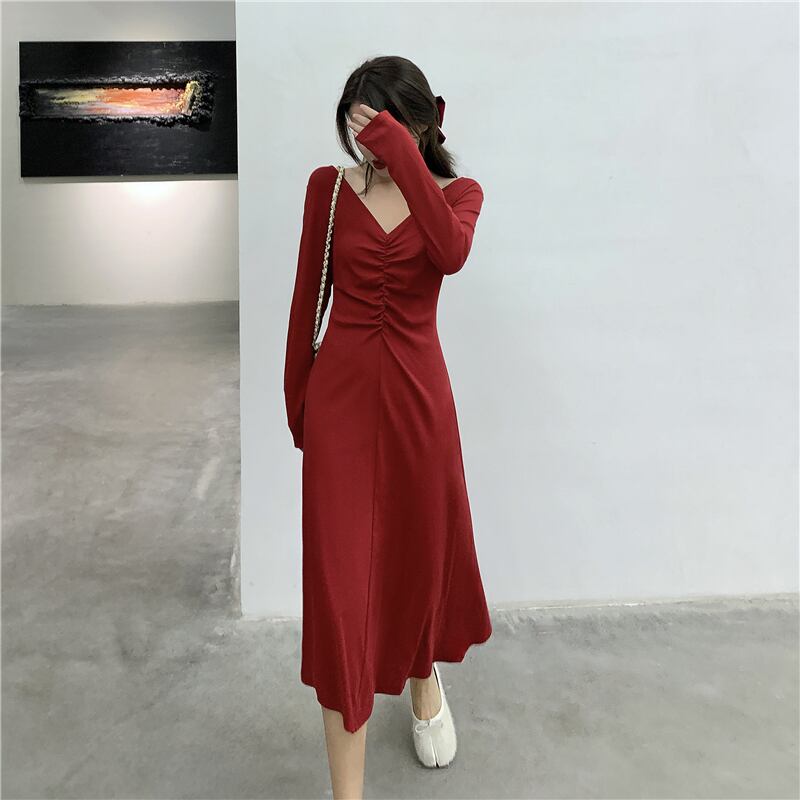 春の長い膝上セータードレスシックなデザインの陰謀の感覚Vネックスリムスリム気質ニットドレス女性 ロング スプリング 春物 yingd42509952350