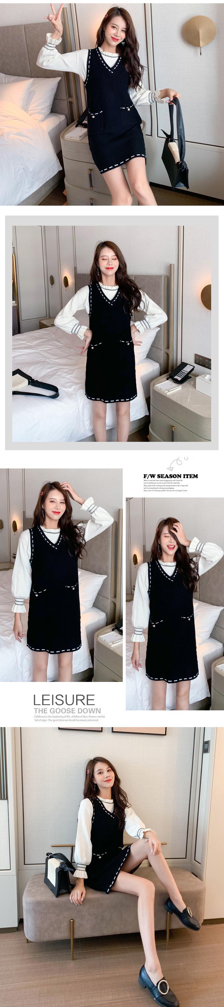 2020年秋新女王女神気質女神ファンスーツスカートベストベストニットワンピースツーピース オータム 秋物 yingd84088562804