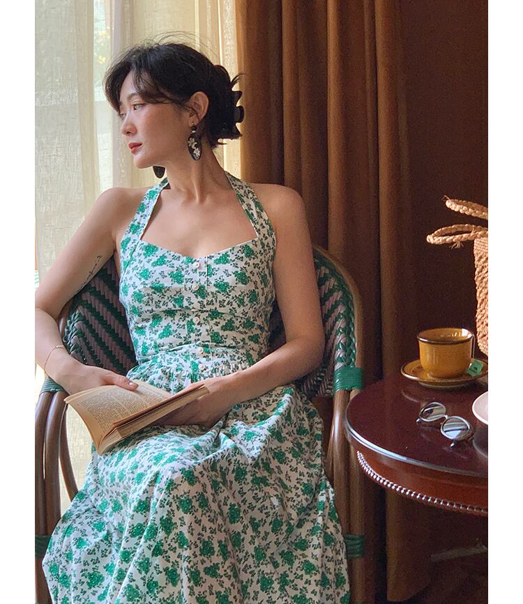 2022年夏の新しい女性のフレンチティーブレイクフローラルサスペンダードレスシックなデザインのホルターネックフローラルドレス サマー 夏物 花柄 yingd28427652756