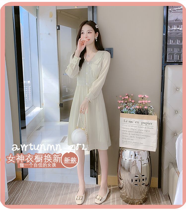 春の婦人服2022年新ウエストと薄手の気質の女神ファン優しい風の妖精長袖シフォンドレス ロング スプリング 春物 yingd29551085836