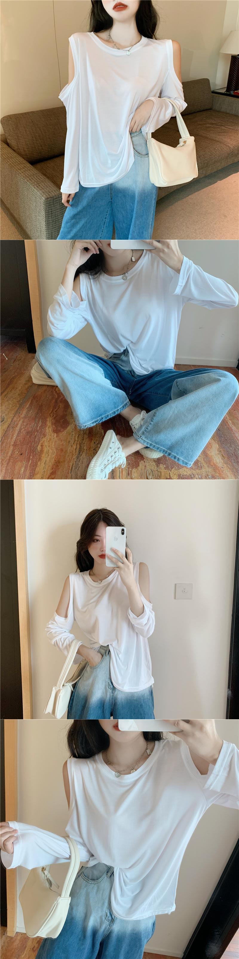トップ2020の新しい女性のバージョンオールマッチオフショルダー長袖Tシャツ女性のミドル丈ルーズシンセクション日焼け止めシャツの潮 ロング yingd70623619438