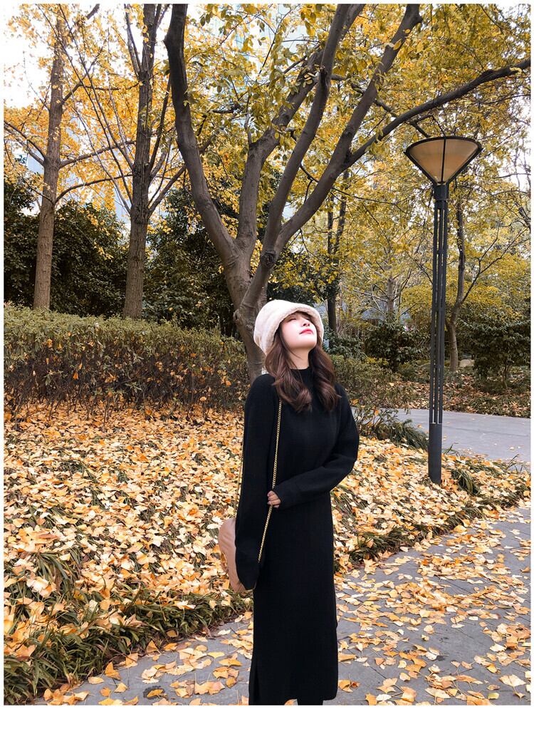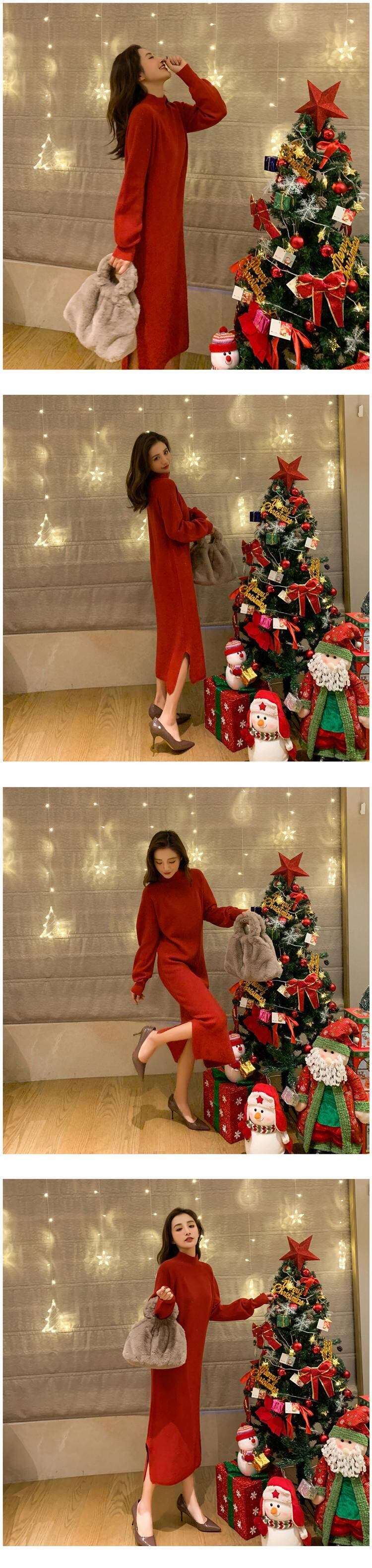 秋冬スカート上質ロングスカートルーズアウターハーフハイカラー厚手のセータークリスマスレッドニットワンピース女性 オータム 秋物 ウィンター 冬物 yingd62994647580