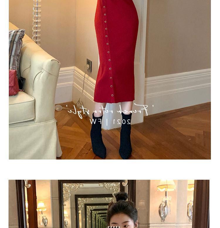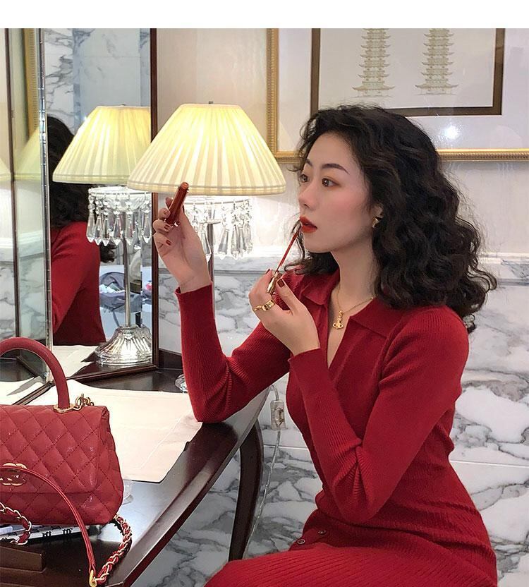 見事なスカート、ハイエンドセンス、香港スタイル、レトロなロング、膝上セータードレス、デザインセンス、ニットの赤いドレス レッド スカート yingd61631537641