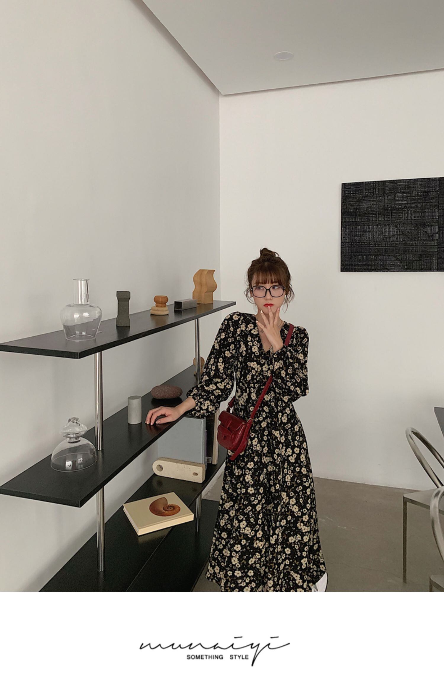 2021年秋新しい女性の腰と薄い気質の女神ファン長袖シフォン花柄ドレス妖精薄い ロング オータム 秋物 yingd90039790954