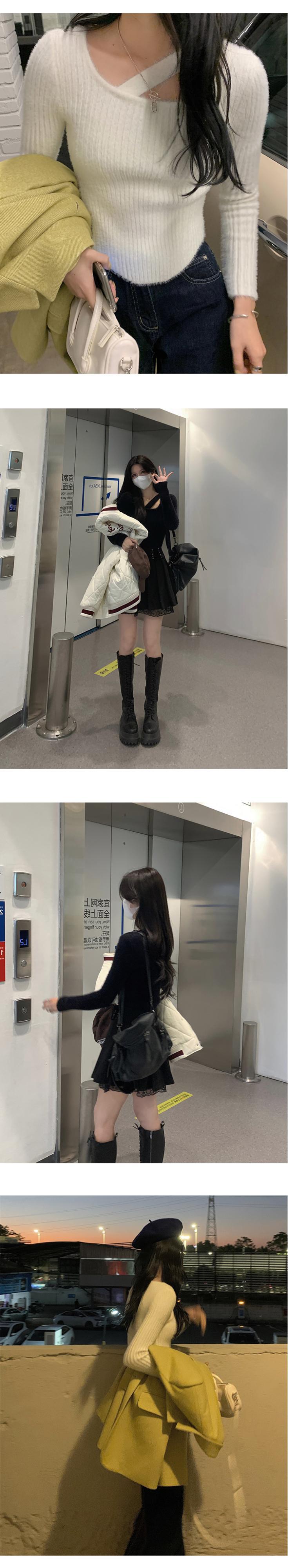 ぬいぐるみフリースボトミングシャツレディース秋冬ウエスタンスタイルインナーデザインニッチ不規則スリム長袖ニットセーターセーター ロング オータム 秋物 ウィンター 冬物 yingd15424167338