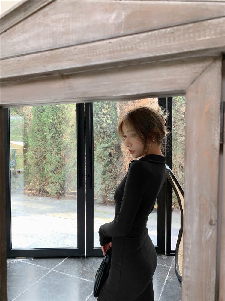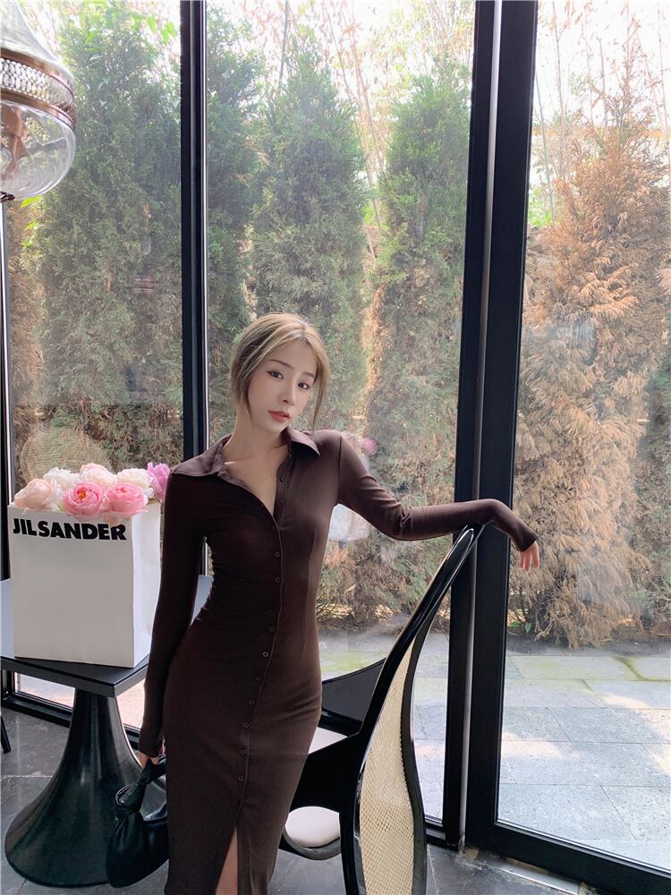 フランスのレトロな揚げストリートロイヤルシスターライトおなじみのスタイルスリムフィットと薄い気質セクシーなタイトなヒップニットドレス秋と冬 オータム 秋物 ウィンター 冬物 yingd59689811586